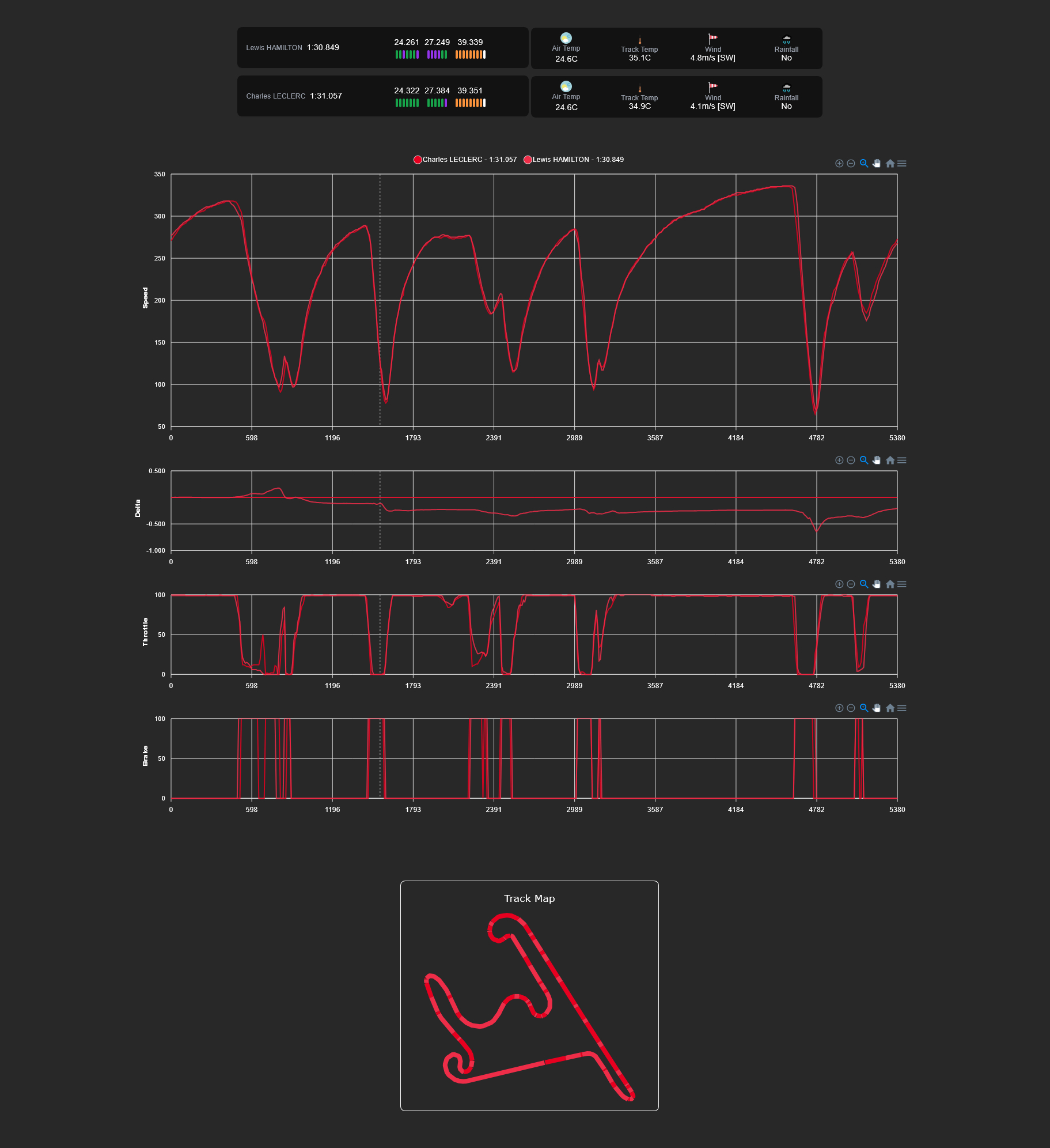 Ο Charles Leclerc εξασφάλισε την 4η θέση με τη δεύτερη Ferrari, αλλά βρέθηκε 0,2 δλ. πίσω από τον νέο του team-mate, έχοντας δυσκολευτεί περισσότερο από τον Hamilton να αναπτύξει θερμοκρασία στα ελαστικά του. O George Russell βρέθηκε στην 5η θέση, 0,32 δλ. μακριά από την κορυφή, με τη Mercedes. Ο Βρετανός δήλωσε ότι εκεί βρισκόταν η W16 και ότι αυτή η θέση αυτή δεν είναι κακή για την εκκίνηση, αλλά ίσως στο γερμανικό στρατόπεδο περίμεναν κάτι περισσότερο σε μία διαδικασία που η McLaren… σκόνταψε.