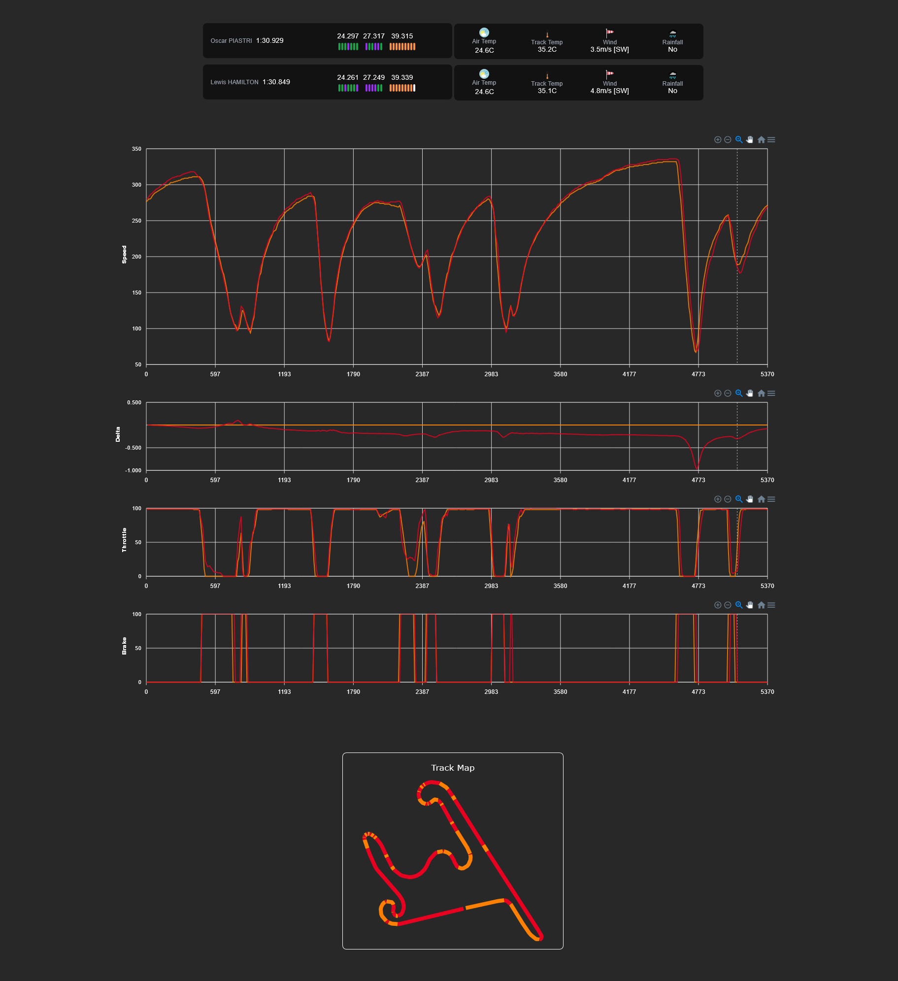 Ο Oscar Piastri έγραψε έναν πολύ καλό γύρο στην πρώτη του προσπάθεια στο SQ3, τον οποίο όμως δεν κατάφερε να βελτιώσει στη δεύτερη απόπειρά του, ενώ οι συνθήκες στην πίστα εξελίσσονταν πολύ γρήγορα προς το καλύτερο, λόγω της νέας ασφάλτου. Έτσι, ο Αυστραλός βρέθηκε 0,08 δλ. μακριά από τον Hamilton, αναφέροντας ότι ήταν γρήγορος στα λάθος μέρη της διαδικασίας.