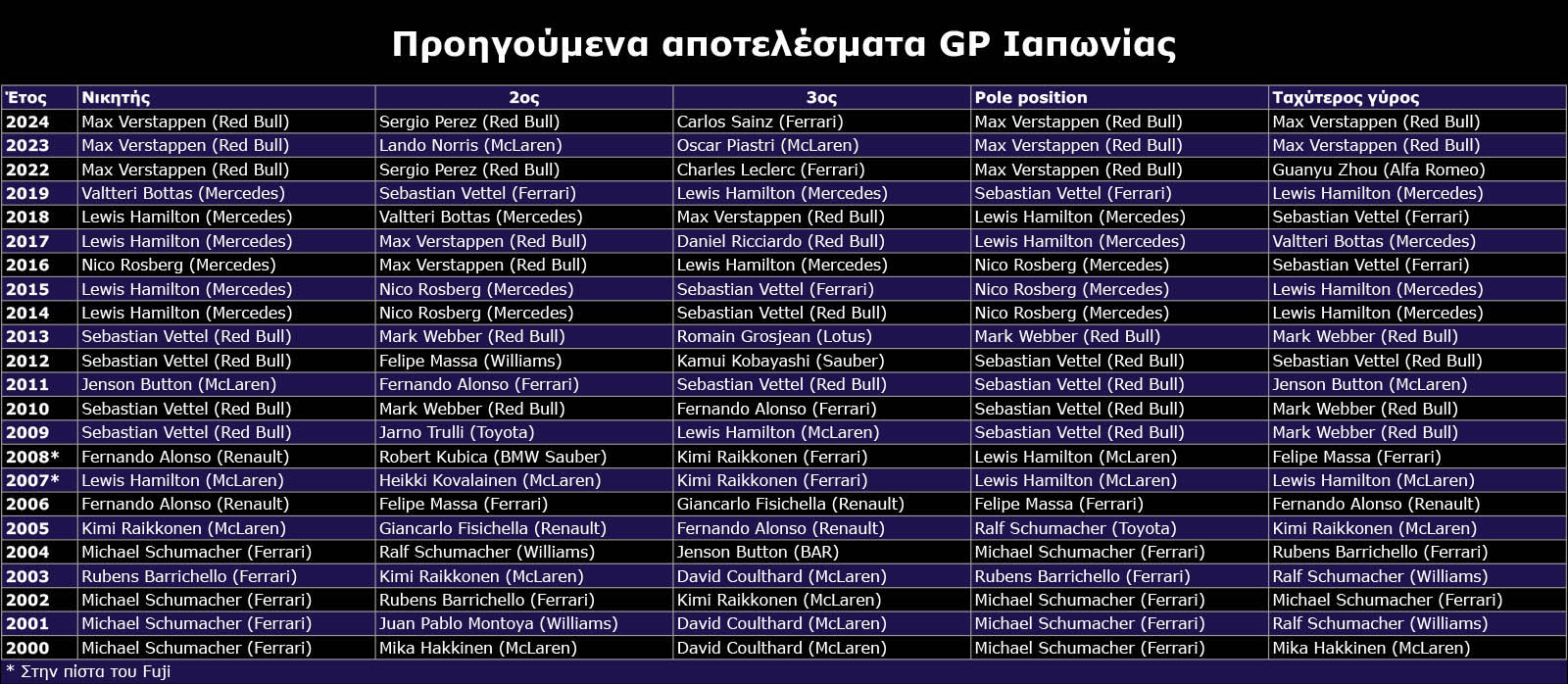 Καλύτερα στιγμιότυπα προηγούμενων GP Ιαπωνίας