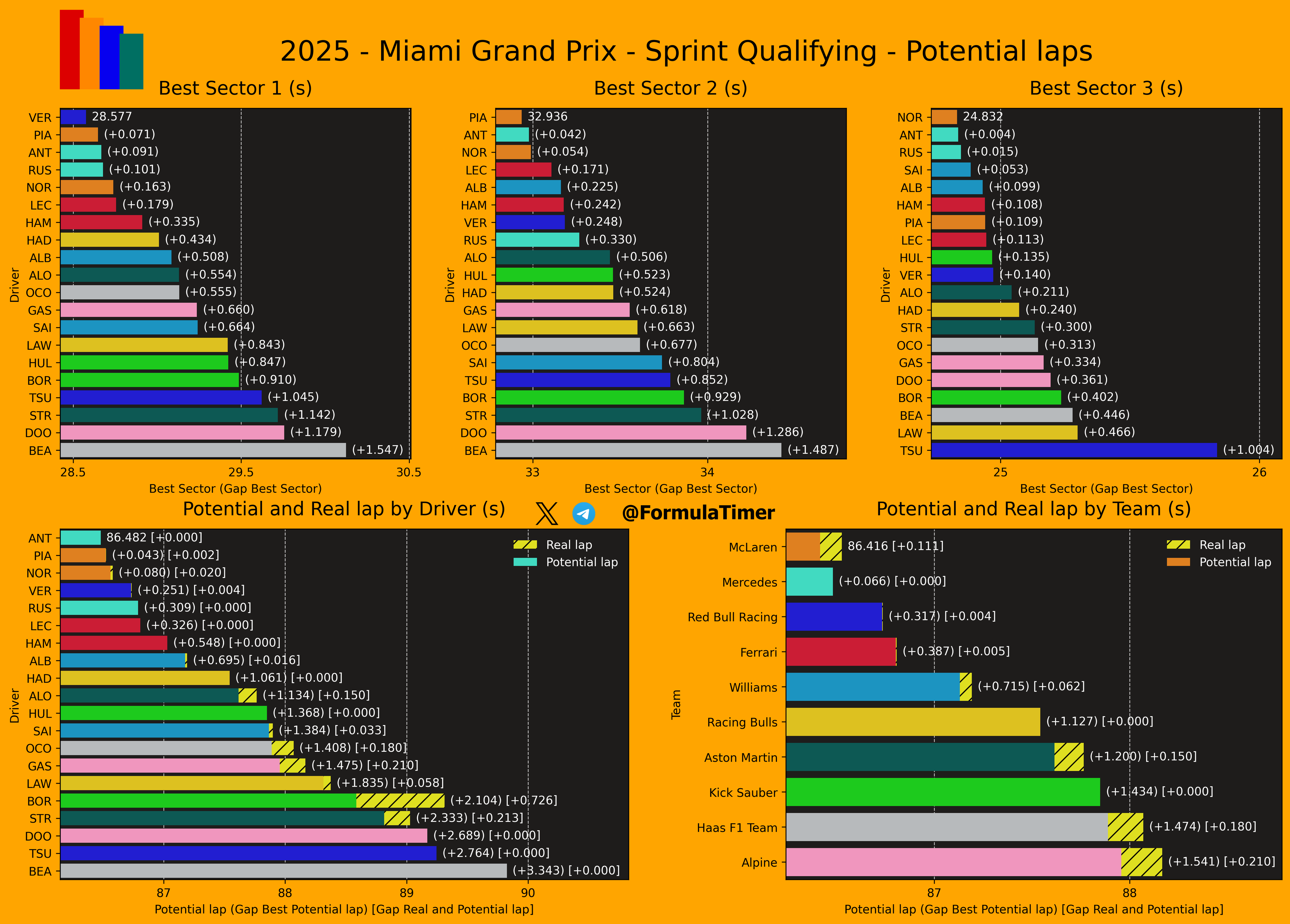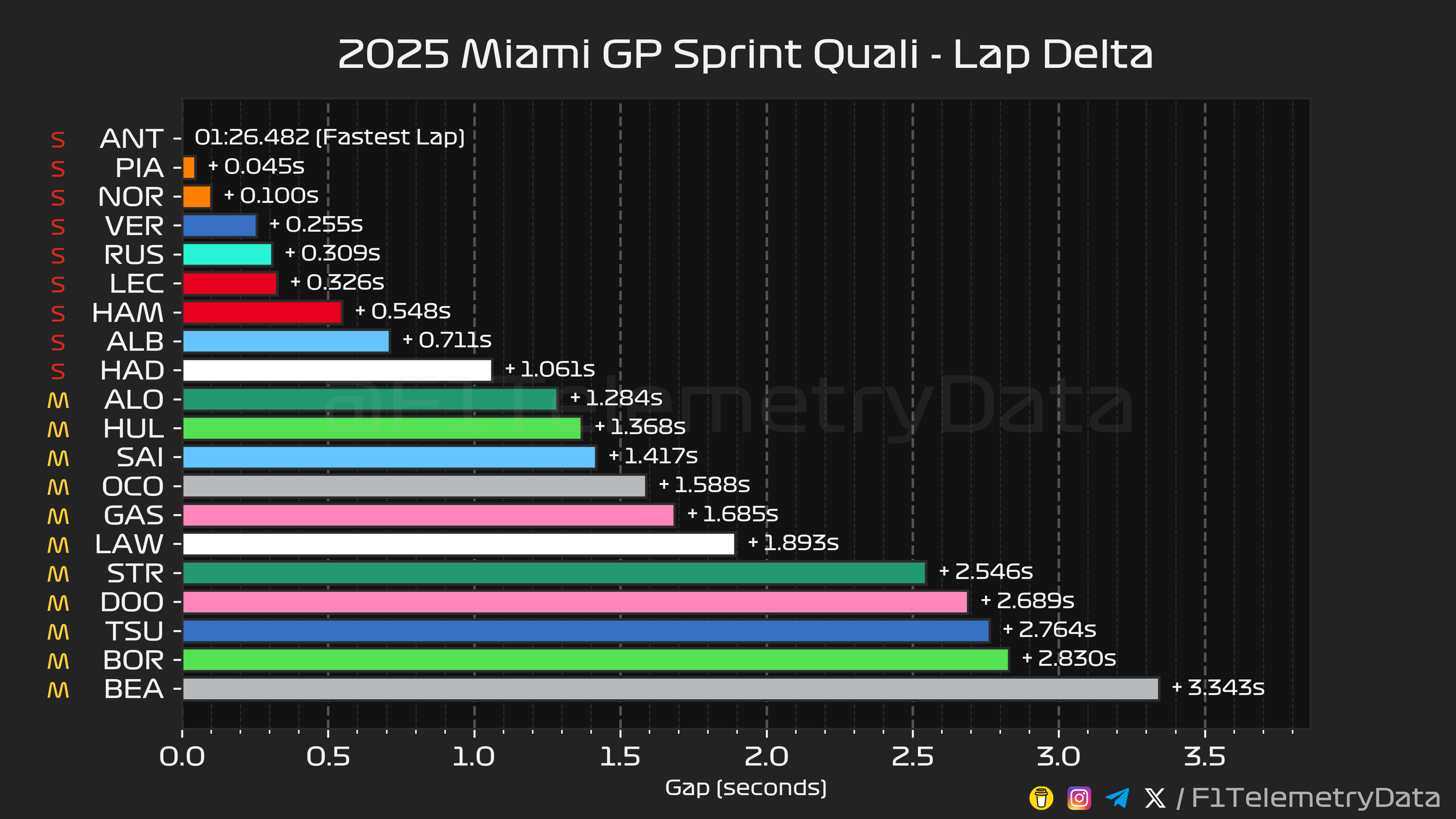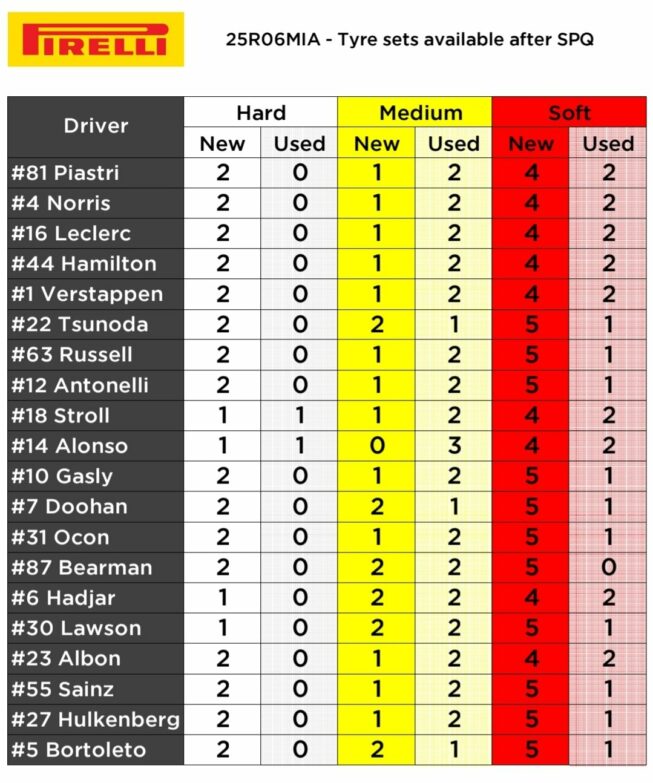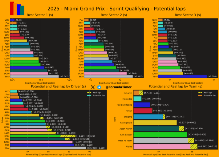 Ο Antonelli κατάφερε να κινηθεί 0,045 δλ. ταχύτερα από τον Oscar Piastri, ο οποίος ήταν ο ταχύτερος εκ των δύο οδηγών της McLaren, με τον Lando Norris να βρίσκεται ακριβώς 0,1 δλ. μακριά από την κορυφή. Ο Piastri είχε ένα μπλοκάρισμα φρένων στη στροφή 17, το οποίο του κόστισε την pole position, ωστόσο εξακολουθεί να βρίσκεται εμπρός από τον κύριο αντίπαλό του στο Πρωτάθλημα, τον team-mate του, σε μία πολύ κοντινή μάχη για την επικράτηση στις κατατακτήριες για το σπριντ του GP Μαϊάμι.