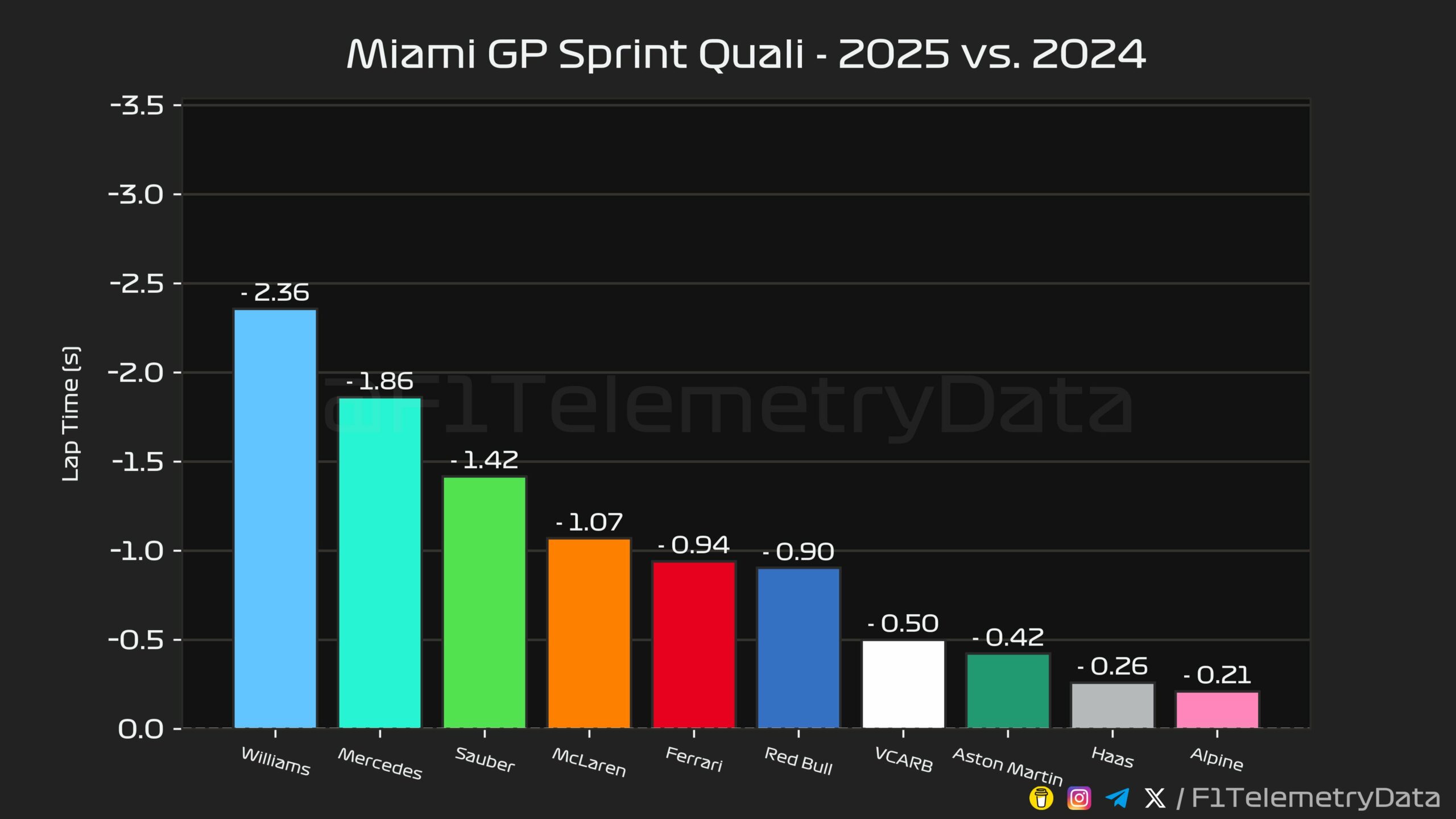 Ο Verstappen δήλωσε ότι η Red Bull είχε υπερβολική υποστροφή στις αργές στροφές του 2ου sector και ήταν πολύ καλύτερη στο πρώτο sector με τις γρήγορες στροφές. Η Red Bull πιστεύει ότι δεν αποτελεί ρίσκο να παρουσιάσει μικρές αναβαθμίσεις στο δάπεδο της RB21 για το GP Μαϊάμι, με το σπριντ, καθώς δεν επηρεάζει τη σταθερότητα της ροής αέρα. Σε σχέση με την προηγούμενη λύση, φέρνει λίγα περισσότερα κιλά αεροδυναμικού φορτίου και ίσως αυτό βοηθήσει τη διαχείριση ελαστικών, με το πίσω μέρος να γλιστράει λιγότερο.