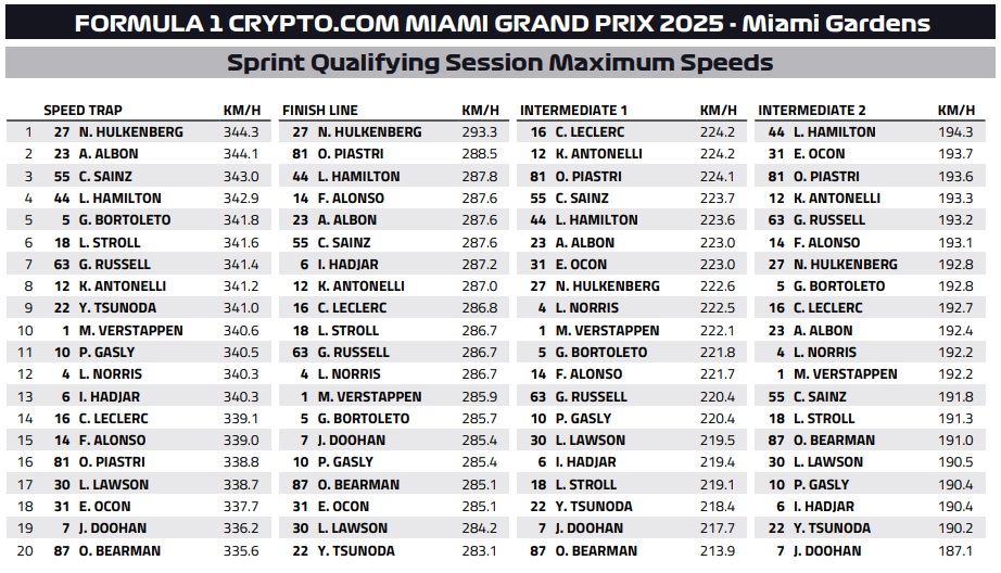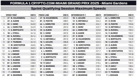 F1 Αποτελέσματα κατατακτήριων δοκιμών σπριντ GP Μαϊάμι 2025