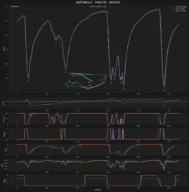 Ο Antonelli δήλωσε ότι μπορεί πλέον να «παίξει» περισσότερο με το μονοθέσιο και αντιλαμβάνεται πολύ καλύτερα τις αλλαγές στο στήσιμο, καθώς τα τεχνικά του σχόλια έχουν βελτιωθεί πολύ. Η Mercedes έδειχνε ότι μπορούσε να είναι επικίνδυνη σε όλα τα σκέλη της διαδικασίας, με υψηλές ταχύτητες στις ευθείες και τις γρήγορες στροφές. Ο Antonelli εκμεταλλεύτηκε τις δυνατότητες του μονοθεσίου του στο έπακρο, με παροιμιώδη ψυχραιμία και εξαιρετική αποφασιστικότητα στο chicane των στροφών 14/15.