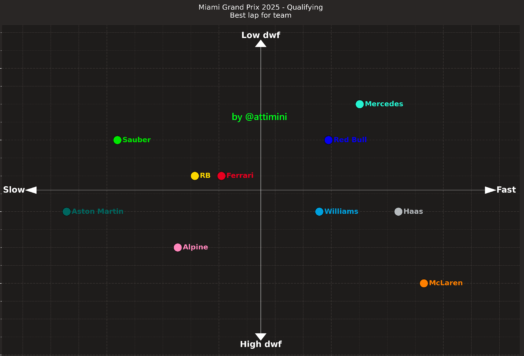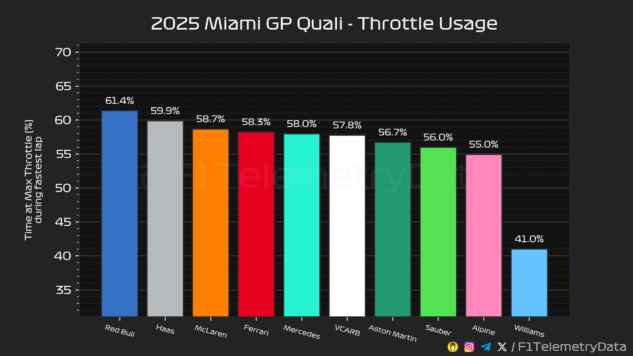 Η βρετανική ομάδα είχε το καλύτερο φετινό της αποτέλεσμα σε κατατακτήριες δοκιμές και δείχνει ότι διαθέτει ένα ταχύτατο μονοθέσιο στο Μαϊάμι. Αυτό αποδεικνύεται από το γεγονός ότι αμφότερες οι Williams βρέθηκαν εμπρός από τη Ferrari του Charles Leclerc. O Μονεγάσκος κατέστρεψε το μοναδικό καινούργιο σετ ελαστικών που είχε για το Q3 στην πρώτη του προσπάθεια στο τελικό σκέλος, με ένα δυνατό μπλοκάρισμα φρένων στη στροφή 17 και έγραψε το χρόνο που μέτρησε στο τέλος με μεταχειρισμένο σετ.