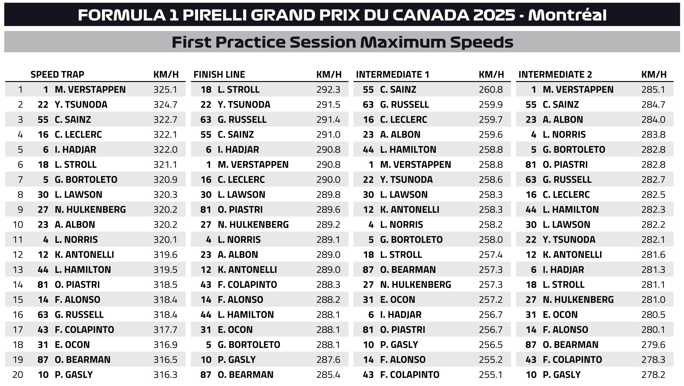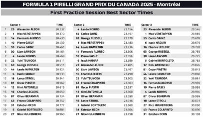 Στην 4η θέση βρέθηκε ο George Russell, ο περυσινός poleman του Καναδά. Ωστόσο, ο Βρετανός οδηγός της Mercedes βρέθηκε 0,34 δλ. μακριά από την κορυφή, με τη θερμοκρασία στην πίστα να είναι στους 44 βαθμούς Κελσίου, δηλαδή αρκετά ψηλά για τις προτιμήσεις της W16. Λίγο πριν συμπληρωθεί το πρώτο 10λεπτο, ο Andrea Kimi Antonelli (13ος) βγήκε εκτός πίστας στη στροφή 6, έχοντας μπλοκάρει τον πίσω άξονα της Mercedes. Στο μισάωρο περίπου, κάτι παρόμοιο συνέβη στον Russell στο ίδιο σημείο.