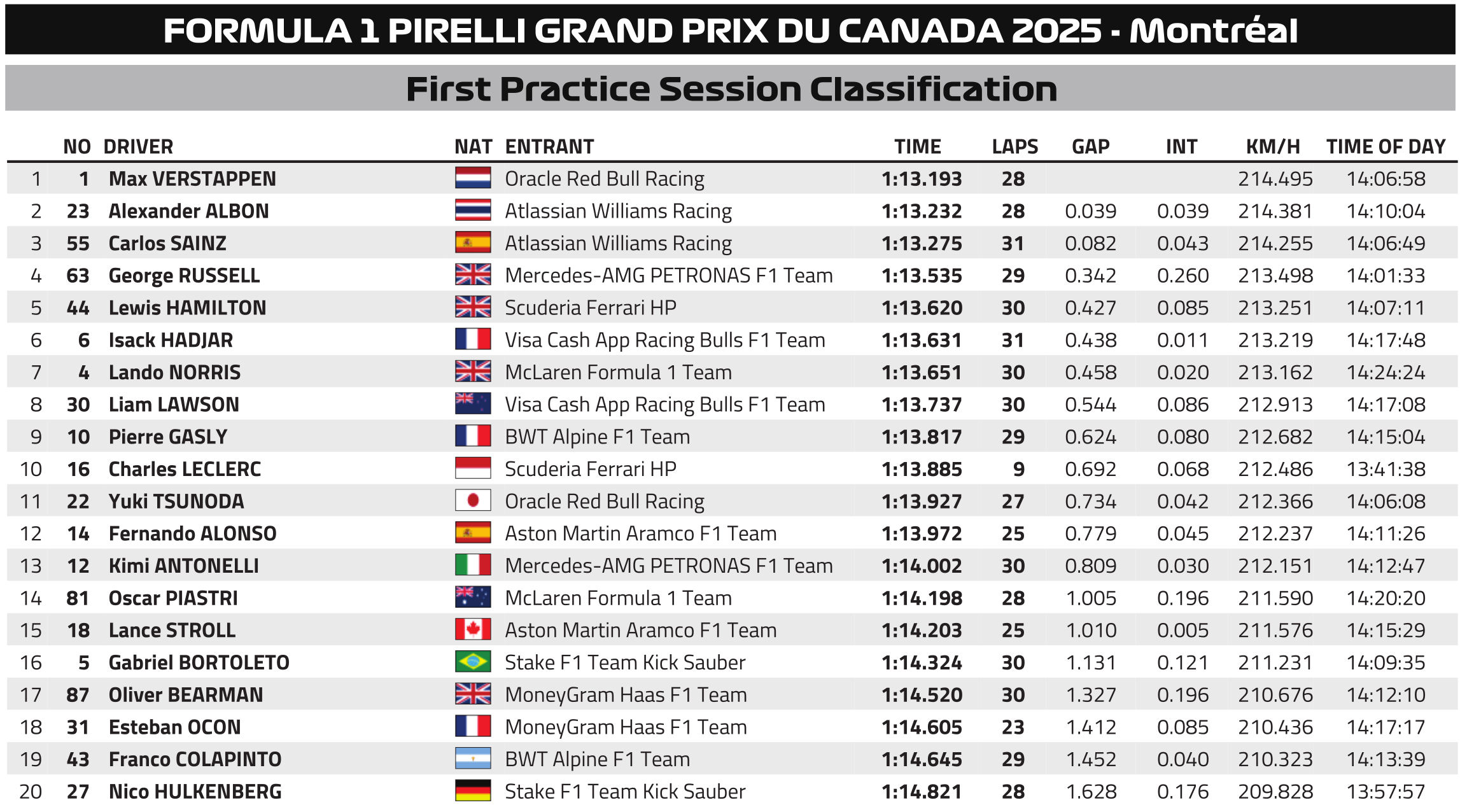 Ο Max Verstappen ξεκίνησε με τον καλύτερο τρόπο τις διαδικασίες του Grand Prix Καναδά, σημειώνοντας τον ταχύτερο χρόνο στο FP1. Μάλιστα, είναι η πρώτη φορά στη φετινή σεζόν της Formula 1 που ο Ολλανδός βρίσκεται επικεφαλής σε μία περίοδο ελεύθερων δοκιμών με το μονοθέσιο της Red Bull και είναι ίσως το καλύτερο ξεκίνημα για την ομάδα σε αγωνιστικό τριήμερο για το 2025.