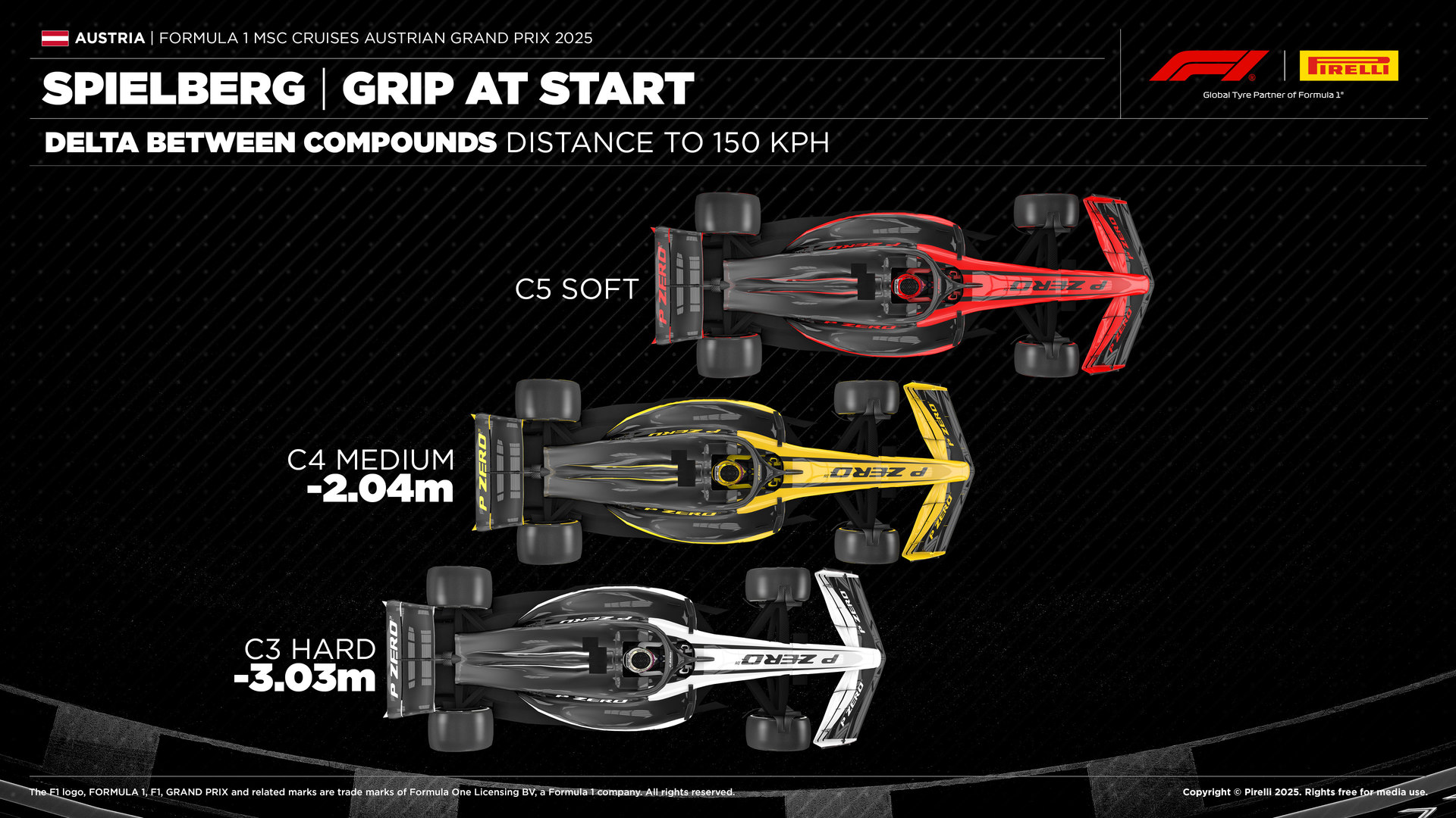 F1 Επιτάχυνσης διαφορετιών ελαστικών στην εκκίνηση GP Αυστρίας 2025