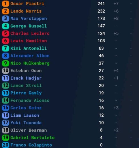 Εντέλει, ο Piastri αναγκάστηκε να συμβιβαστεί με τη 2η θέση. Παρότι η McLaren ήταν πολύ ταχύτερη στις γρήγορες στροφές του μεσαίου sector, δεν υπάρχει ευκαιρία προσπεράσματος εκεί. Ο Αυστραλός δήλωσε ότι δεν είχε αρκετή ταχύτητα στις ευθείες για να περάσει τον αντίπαλό του και δυσκολευόταν να τον πλησιάσει στο 2ο sector με τον διαταραγμένο αέρα που άφηνε πίσω της η Red Bull.