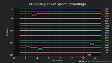Παρότι ο Piastri βρισκόταν για 14 γύρους σε εμβέλεια DRS από την πρωτοπόρο Red Bull, ο Verstappen ήταν άριστος σχεδόν κάθε φορά στο πιο κρίσιμο σημείο της πίστας, την έξοδο από την 1η φουρκέτα της La Source για να διατηρήσει πίσω του τη McLaren. O Verstappen ήταν εφοπλισμένος με μία πιο λεπτή πίσω αεροτομή και είχε υψηλότερη ταχύτητα στις ευθείες.