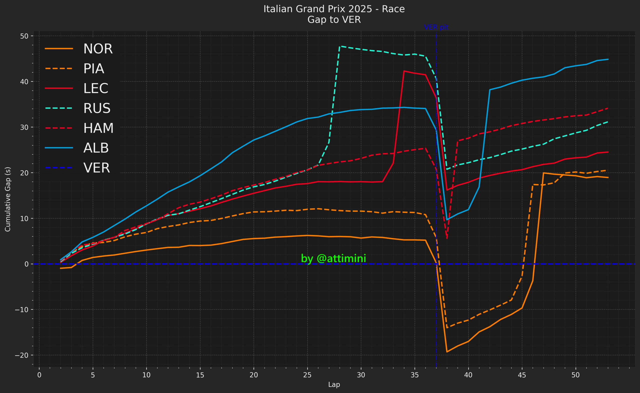 Σε μία πίστα όπου η Red Bull είχε μία από τις χειρότερες εμφανίσεις της πέρυσι, ο Max Verstappen κατέκτησε την 66η νίκη του στην F1, κάνοντας τον πιο σύντομο σε διάρκεια αγώνα -και ταχύτεροστην ιστορία της Formula 1 καταρρίπτοντας το ρεκόρ του Michael Schumacher από το 2006, και πάλι στη Monza. H Red Bull ήταν πολύ καλύτερη από τη McLaren που δοκίμασε κάτι διαφορετικό, ελπίζοντας σε ένα αυτοκίνητο ασφαλείας.