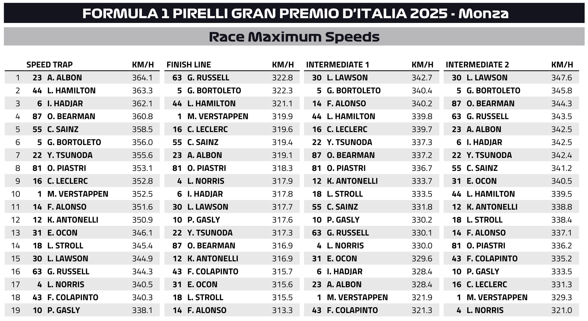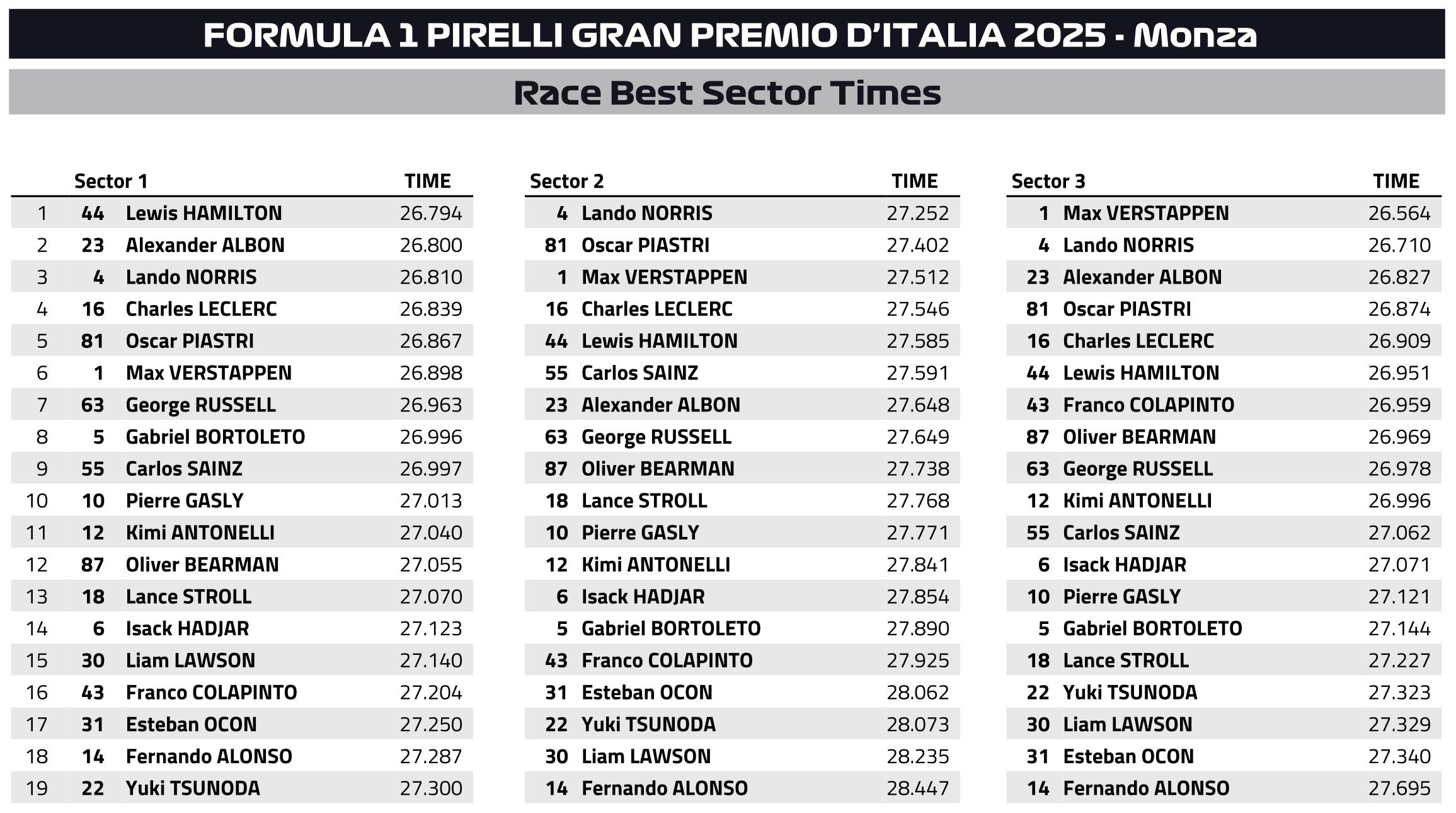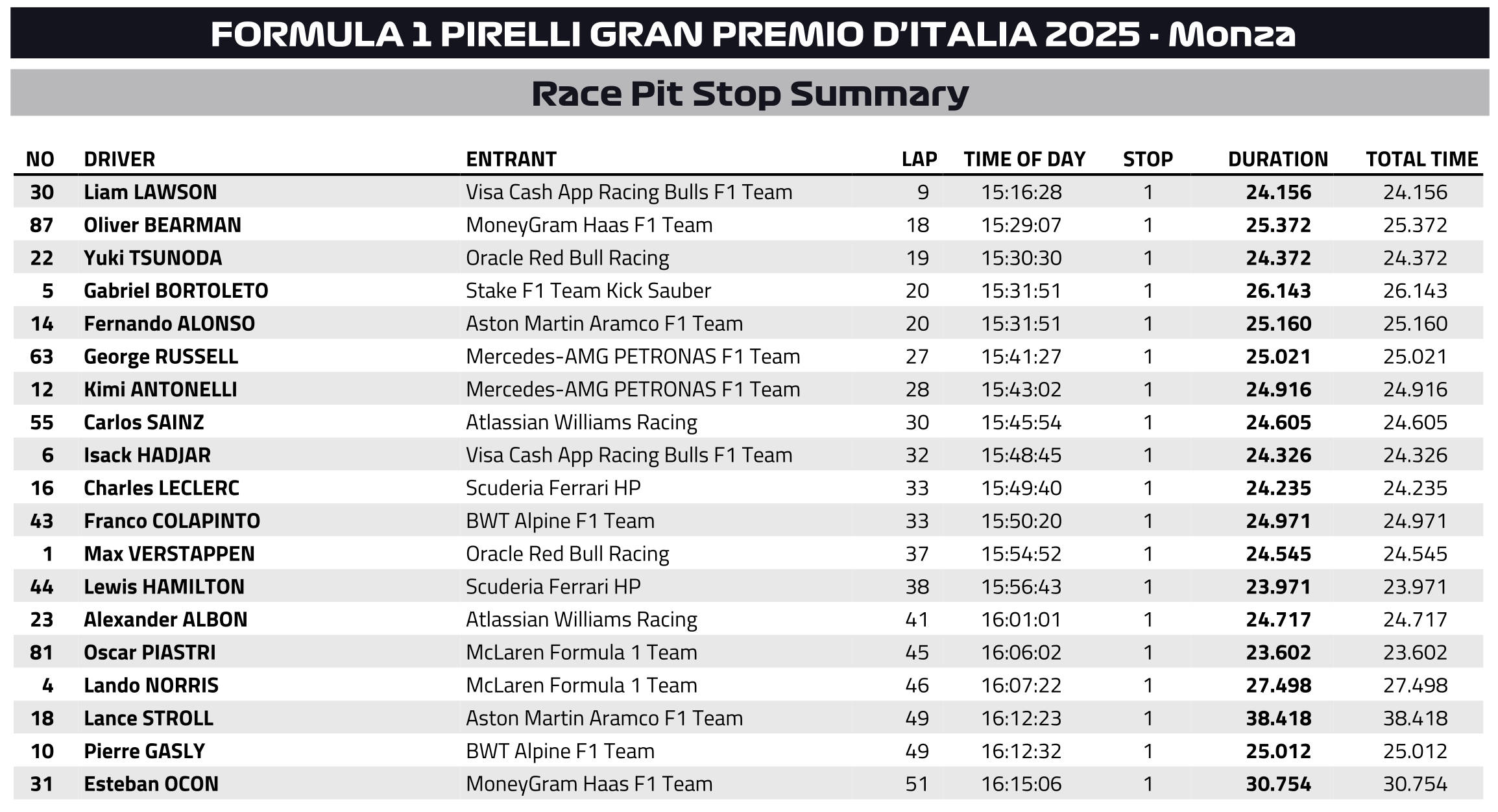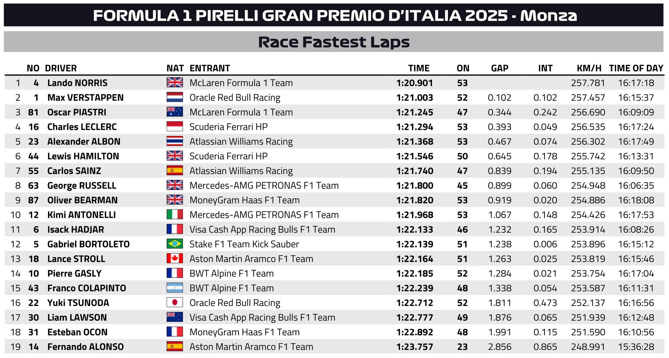F1 Αποτελέσματα GP Ιταλίας 2025