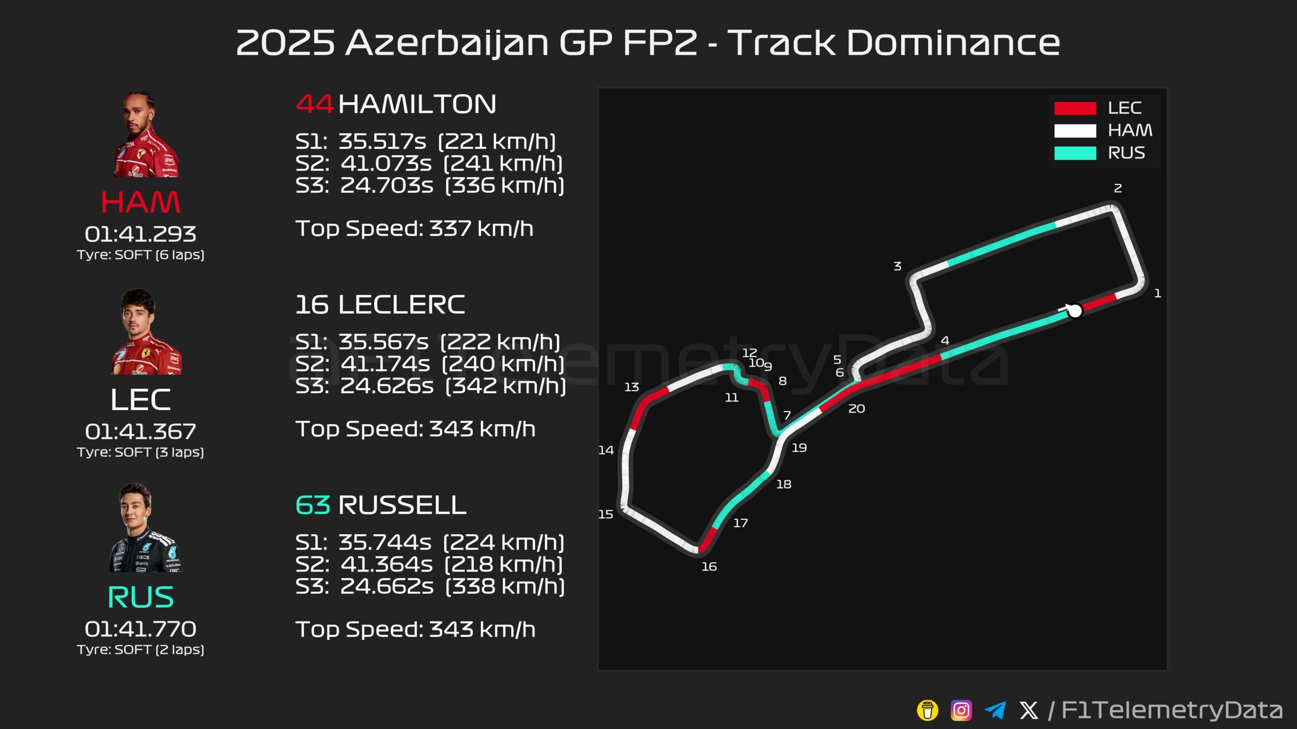 Η Ferrari φαίνεται ότι βρήκε απόδοση από το FP1 στο FP2 του Grand Prix Αζερμπαϊτζάν, καθώς οι δύο οδηγοί της κατάφεραν να σημειώσουν τους ταχύτερους χρόνους στην τελική διαδικασία ελεύθερων δοκιμών την Παρασκευή. Μάλιστα, ο Lewis Hamilton ήταν ταχύτερος από τον Charles Leclerc, που έχει σημειώσει την pole position στο Μπακού τα προηγούμενα τέσσερα χρόνια.