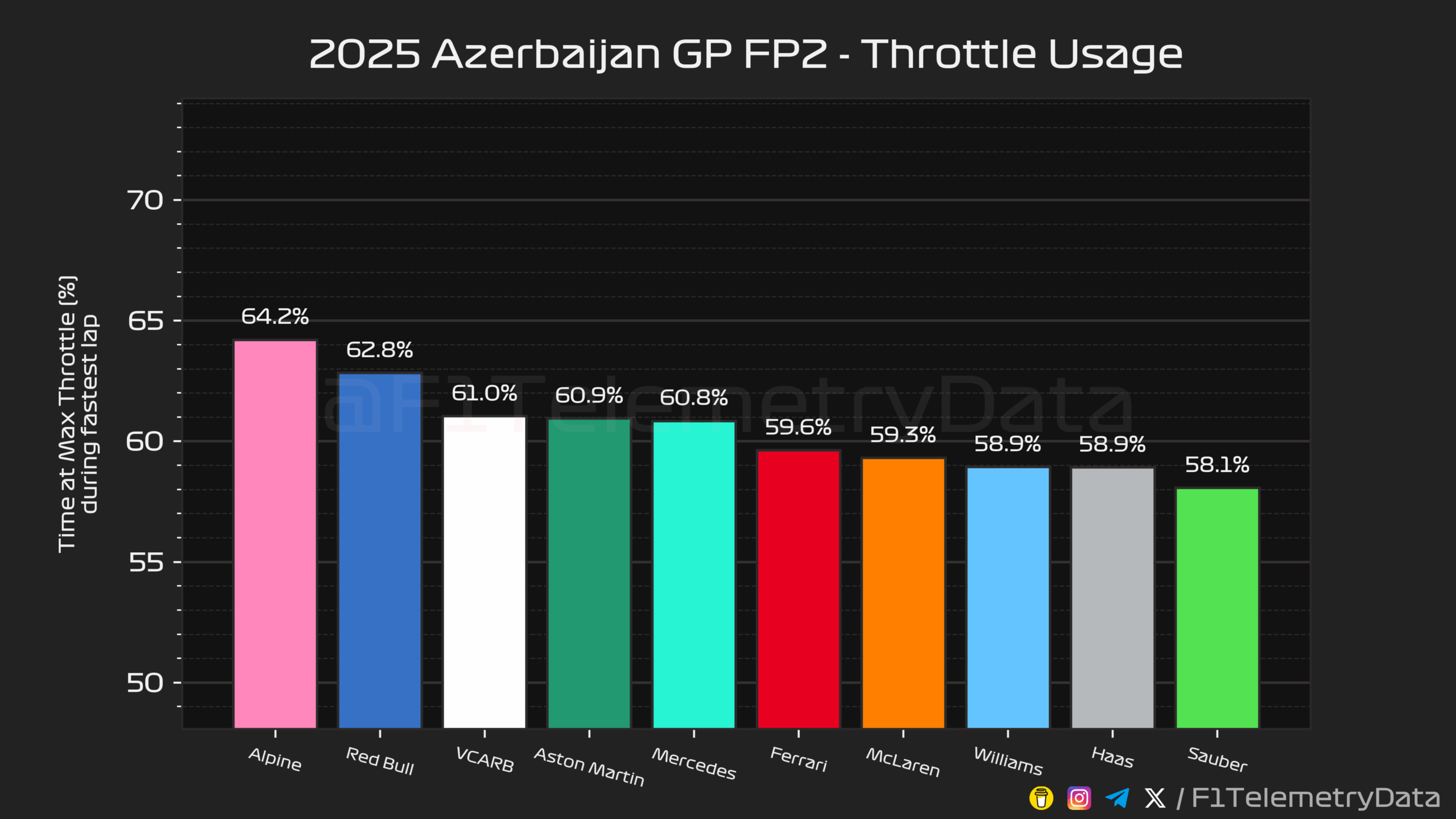Παρότι ο Liam Lawson ξεκίνησε τη διαδικασία με ένα δυνατό μπλοκάρισμα φρένων, κατάφερε να τοποθετήσει τη Racing Bulls στην 7η θέση, με άνετη διαφορά από τον Esteban Ocon με τη δεύτερη Haas. O Alex Albon ήταν 9ος με τη Williams, ενώ ο Carlos Sainz βρέθηκε μεταξύ των δύο McLaren, στην 11η θέση.