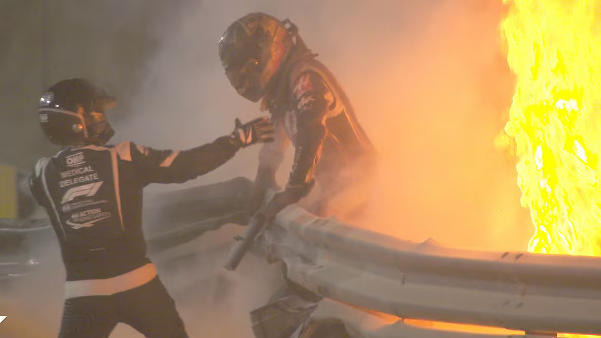Η Haas του Grosjean είχε τυλιχθεί στις φλόγες όταν προσέκρουσε στις μπαριέρες με ορμή 67 G στον 1o γύρο του GP Μπαχρέιν το 2020, με αποτέλεσμα να υποστεί εκτεταμένα εγκαύματα και στα δύο χέρια. Την Παρασκευή, θα επιστρέψει σε ένα μονοθέσιο της Formula 1 μετά από πρόσκληση της πρώην ομάδας του Haas, με την οποία αγωνίστηκε για πέντε σεζόν, μεταξύ 2016 και 2020.
