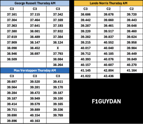 Ο Norris έκανε ορισμένες μεγάλες ακολουθίες γύρων, αντιμετωπίζοντας αρκετά μεγάλη καταπόνηση ελαστικών (ενδεχομένως και λόγω των υψηλών θερμοκρασιών), με τους χρόνους να ανεβαίνουν αρκετά. Στο τελικό stint, οι χρόνοι του Norris ήταν πιο σταθεροί, αλλά όταν τα ελαστικά έχασαν απόδοση, είχε δύο μπλοκαρίσματα φρένων και εξόδους από την πίστα, επιστρέφοντας στα pits.