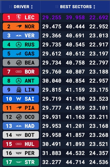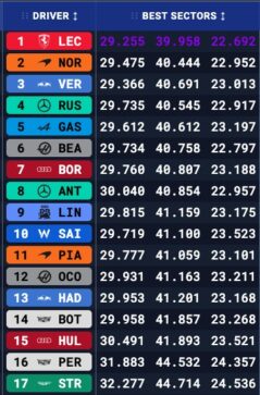 Ωστόσο, ο Ολλανδός κατάφερε να βρεθεί μπροστά από τον George Russell (1,2 δλ. μακριά από την κορυφή), που ανέλαβε τη Mercedes το απόγευμα. Η γερμανική ομάδα φαίνεται να έχει βελτιώσει τις εκκινήσεις της, καθώς ο Βρετανός τις χαρακτήρισε τις χειρότερες που είχε στην καριέρα του, αλλά η Ferrari εξακολουθεί να έχει πλεονέκτημα σε αυτόν τον -πολύ σημαντικό- τομέα.
