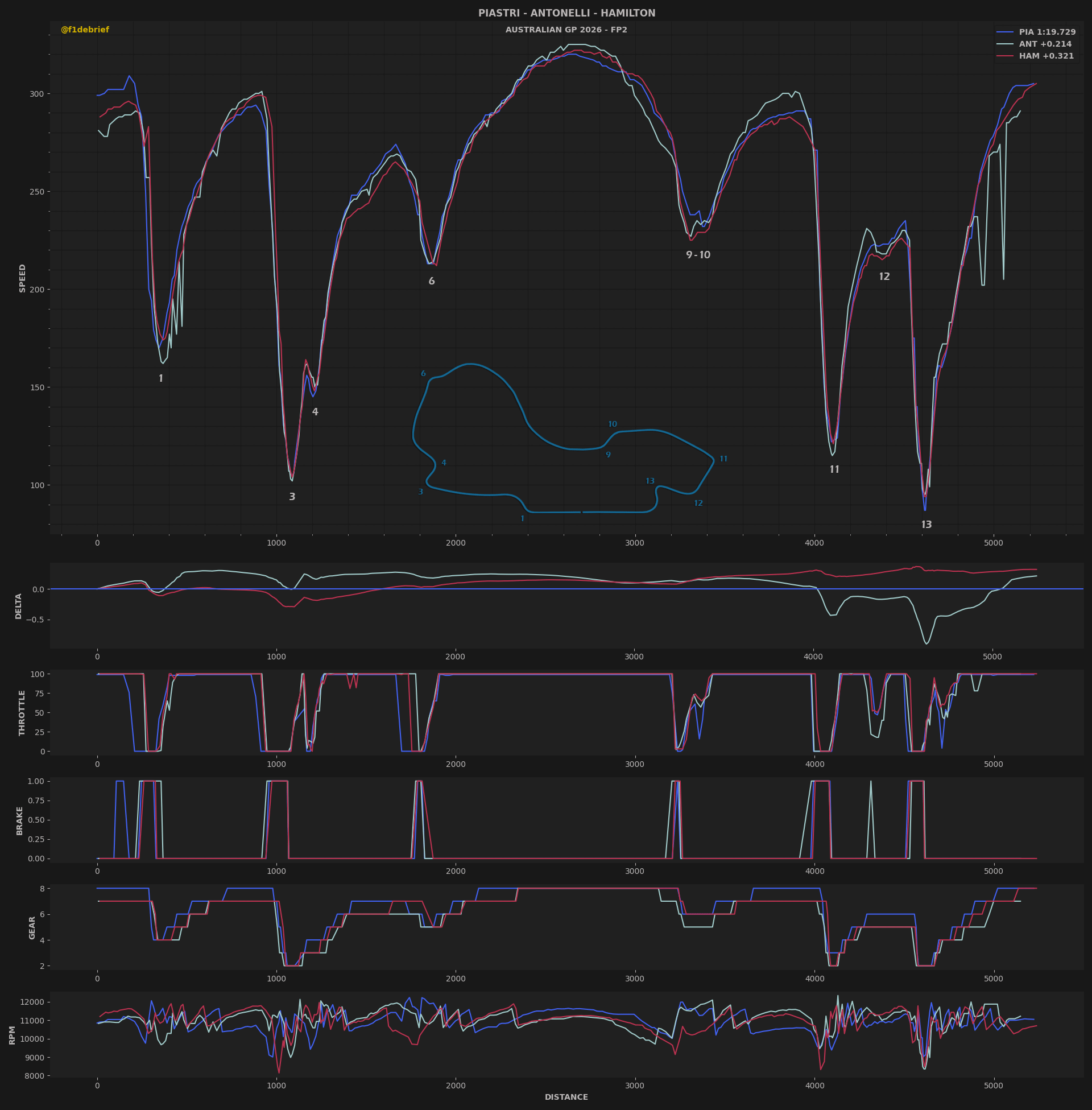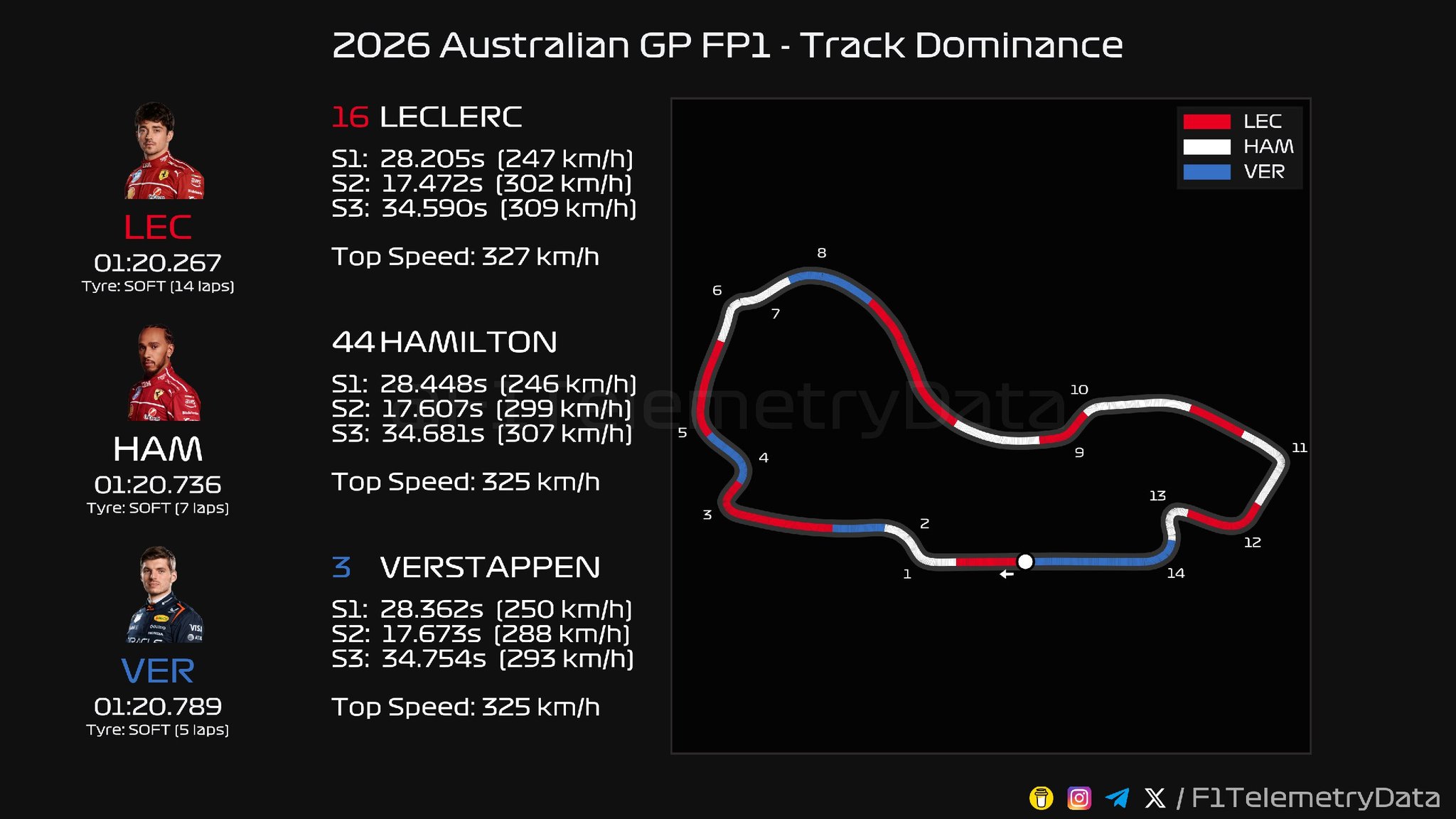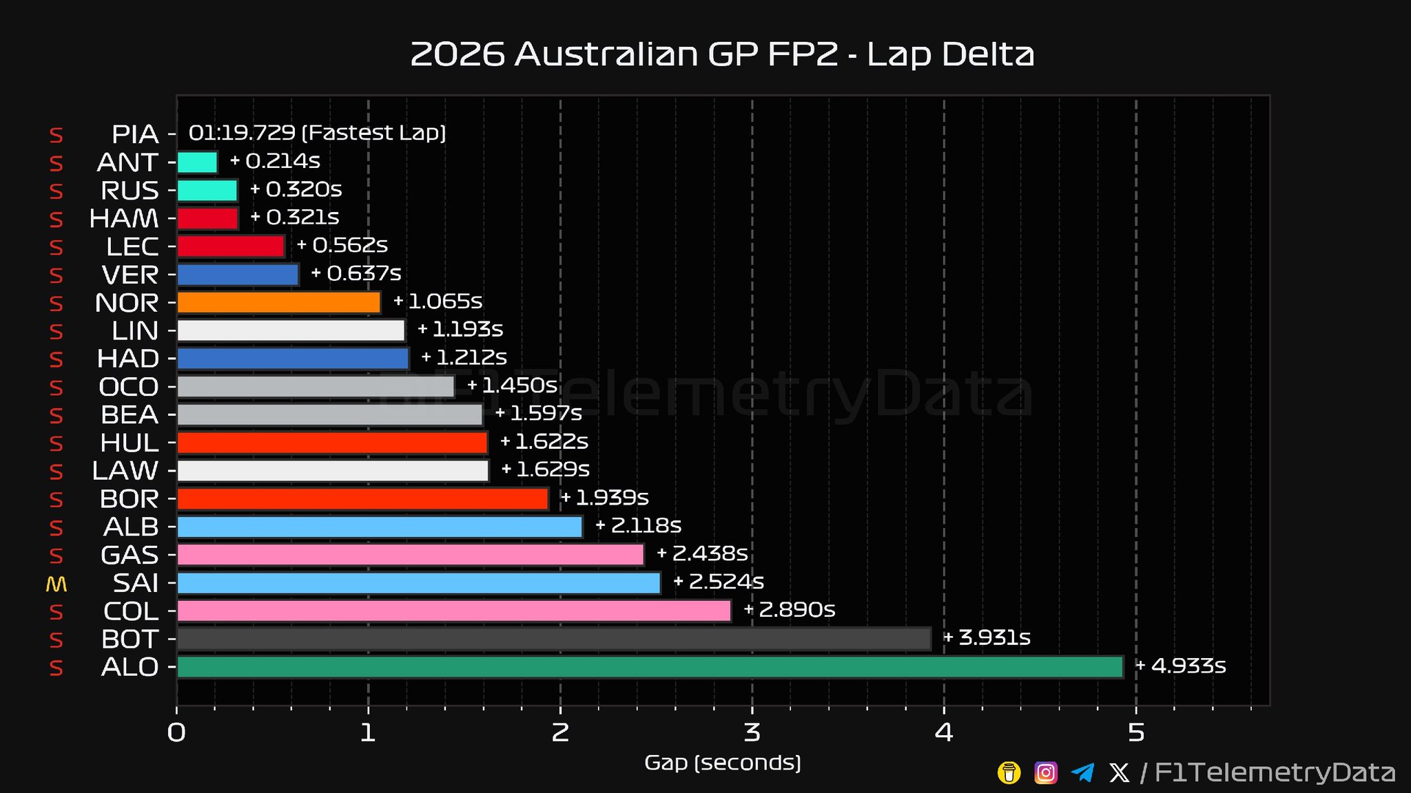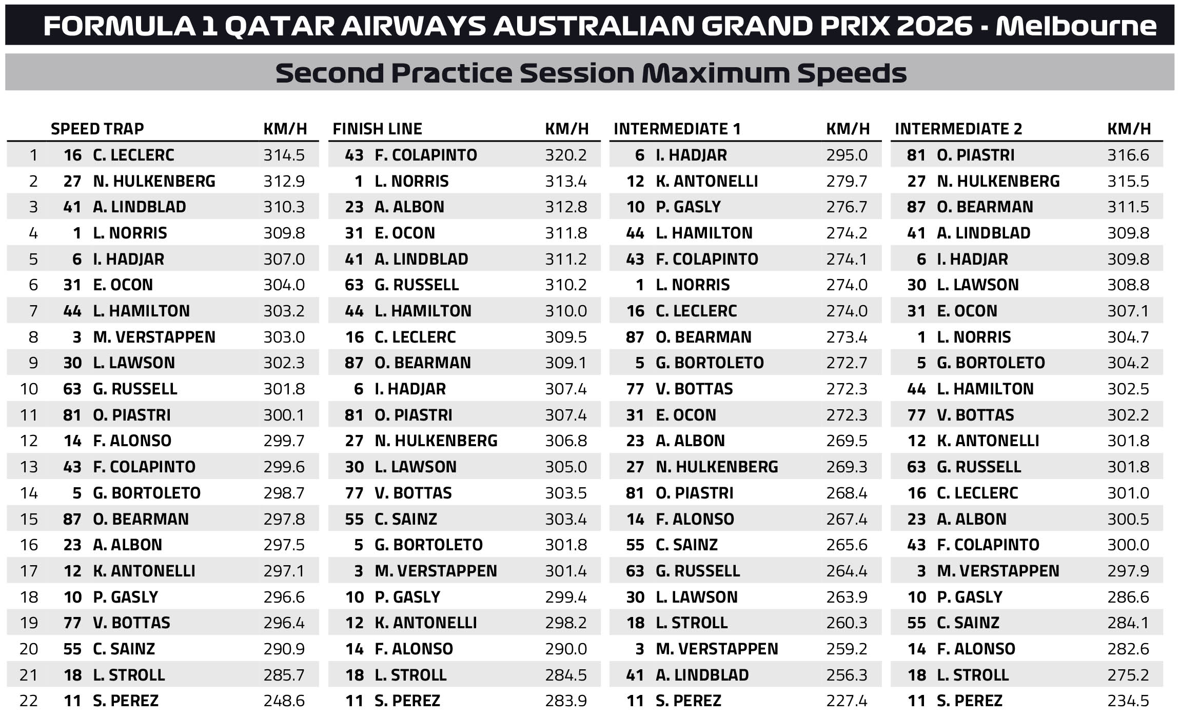 Η Ferrari, που έκανε το «1-2» στο FP1 με τον Charles Leclerc ταχύτερο, φάνηκε και αυτή να βρίσκεται στη μάχη της κορυφής, με τους οδηγούς της να συμπληρώνουν την πρώτη πεντάδα στο FP2. Άλλωστε, η ταχύτερη επίδοση του Lewis Hamilton ήταν μόλις 1 χλστ. του δλ. πίσω από αυτήν του Antonelli. O Βρετανός κατάφερε να αποφύγει μία επικίνδυνη κατάσταση, όταν στην ευθεία εκκίνησης/τερματισμού απέφυγε την Alpine του Franco Colapinto, ο οποίος είχε χάσει ισχύ. Οι οδηγοί της Ferrari είχαν διαφορετική στρατηγική αποδέσμευσης ηλεκτρικής ενέργειας από το F1 στο FP2, με τη Ferrari ίσως να δοκιμάζει διαφορετικές λύσεις.