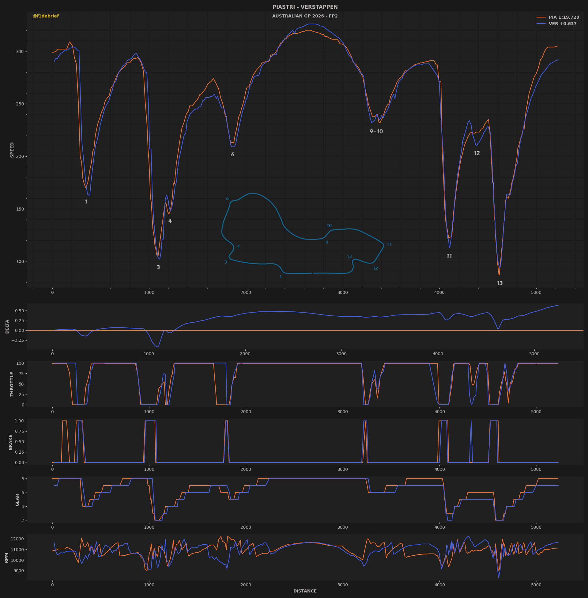 O Max Verstappen με τη Red Bull βρέθηκε και στις δύο διαδικασίες πίσω από τις Ferrari, αλλά το FP2 δεν πήγε τόσο καλά για τον Ολλανδό, ο οποίος στο πρώτο 10λεπτο της διαδικασίας πήγε να κάνει μία δοκιμαστική εκκίνηση στο τέλος του pit lane, αλλά του έσβησε ο κινητήρας (όπως είχε συμβεί και στον Arvid Lindblad με τον ίδιο V6 στη Racing Bulls στο FP1), με αποτέλεσμα να χάσει περίπου 20 λεπτά στα pits. O Verstappen είχε και μία έξοδο από την πίστα στη γρήγορη στροφή 10, τραυματίζοντας το δάπεδο της Red Bull.