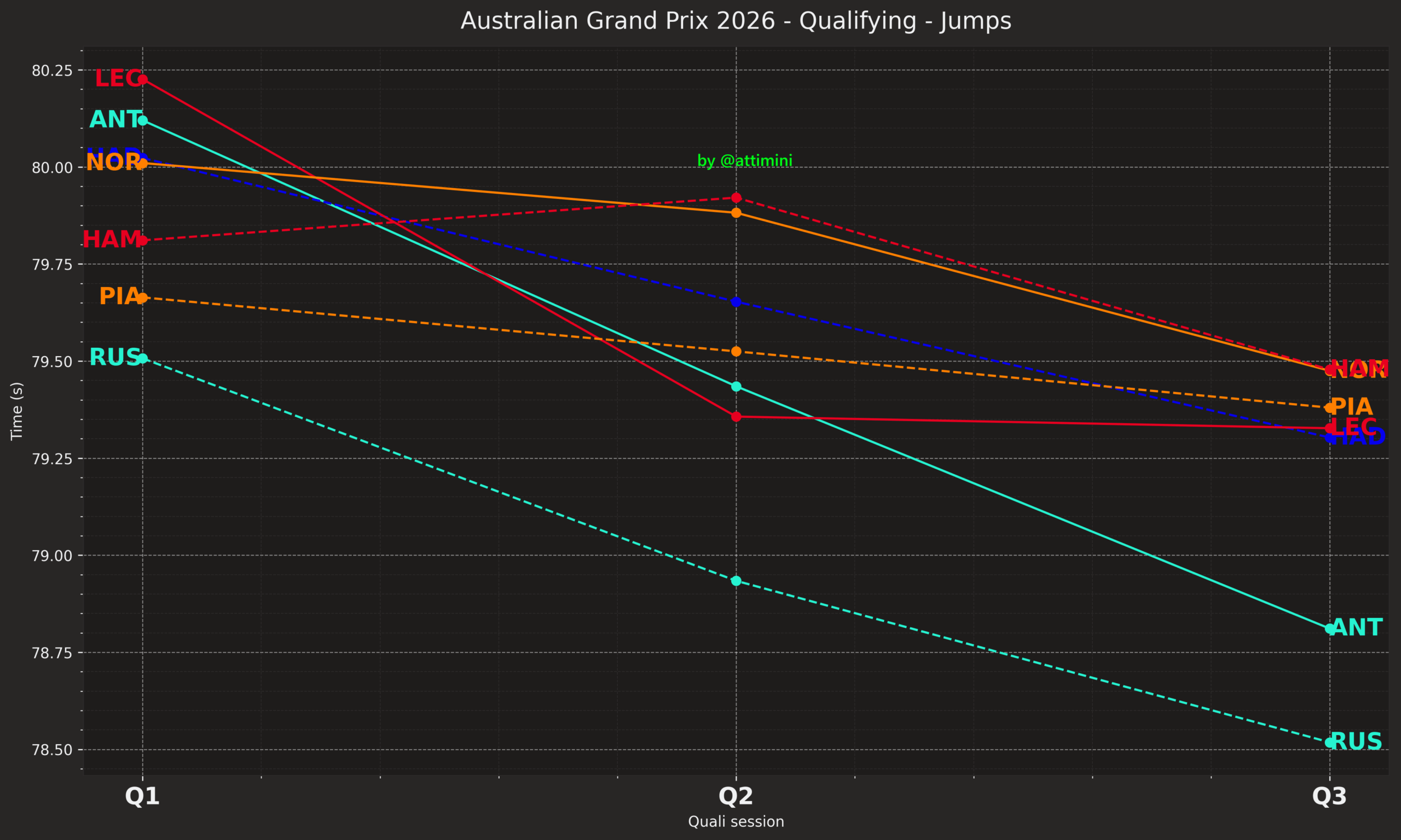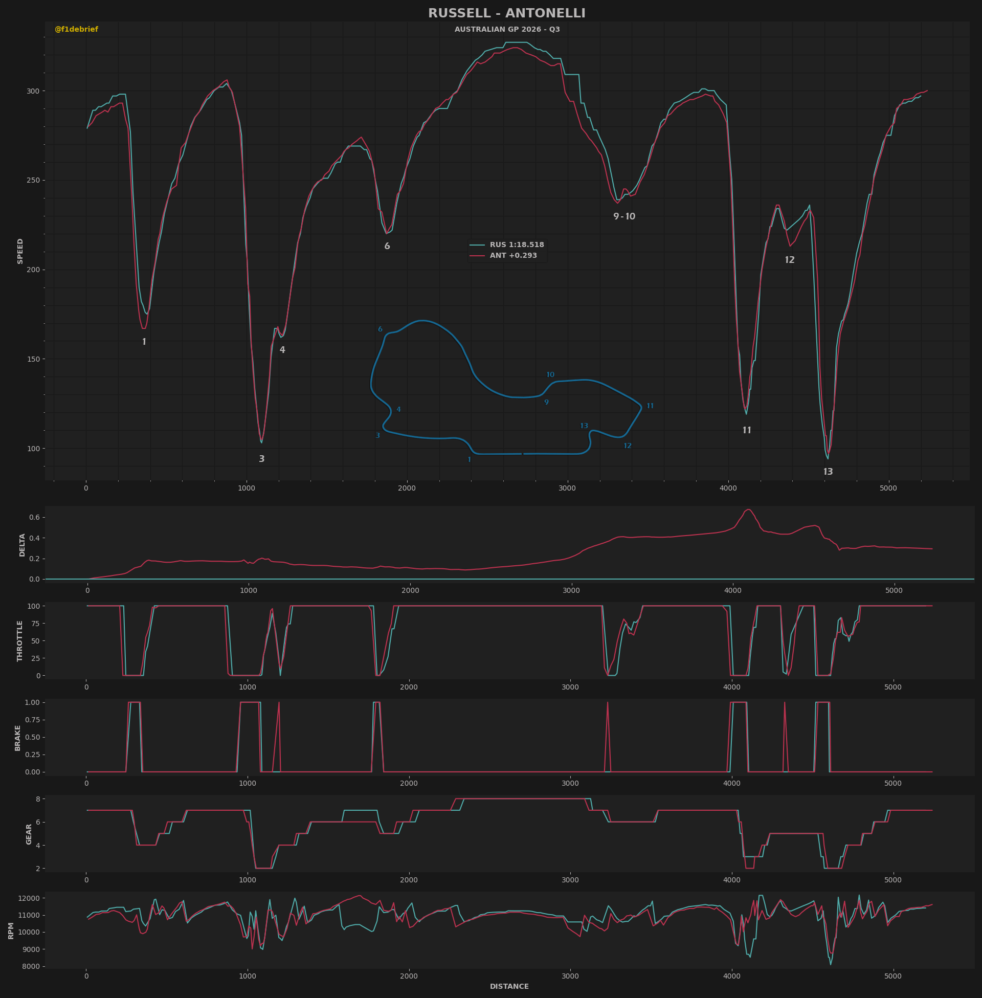 O team-mate του, Andrea Kimi Antonelli, ο οποίος σημείωσε τον 2ο χρόνο, 0,29 δλ. μακριά από την κορυφή, είχε μία αρκετά ταραχώδη διαδικασία. H Mercedes έκανε πολύ καλή δουλειά για να επισκευάσει το μονοθέσιο του Andrea Kimi Antonelli, έπειτα από σφοδρό ατύχημα του Ιταλού στο FP3, με τη βοήθεια της κόκκινης σημαίας από το ατύχημα του Max Verstappen, που επιμήκυνε το Q1 και έδωσε στους μηχανικούς επιπλέον χρόνο.