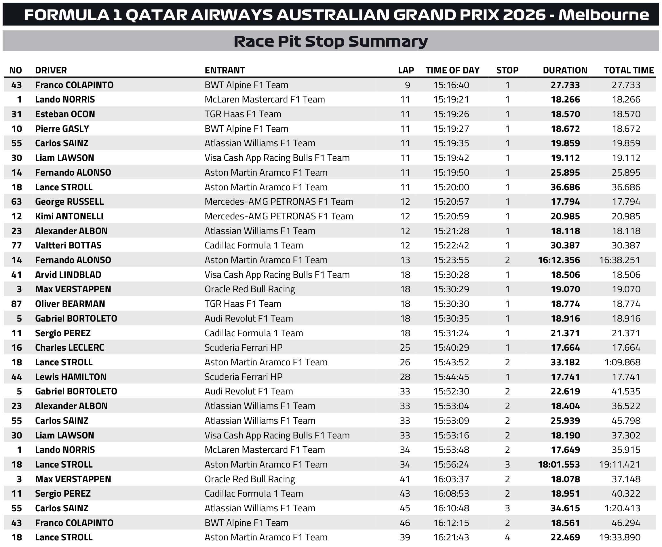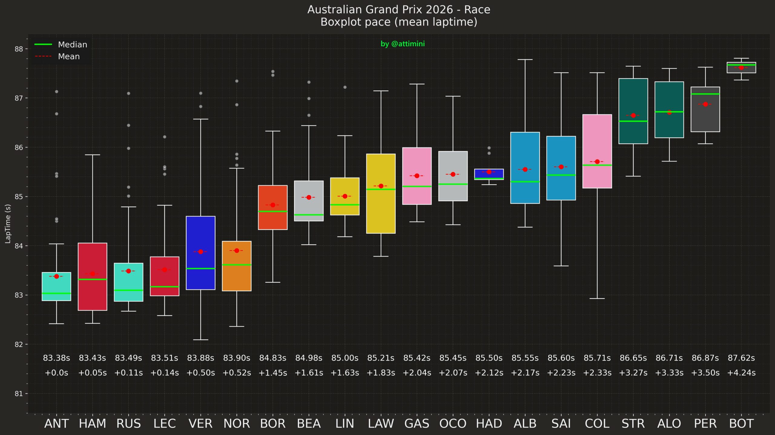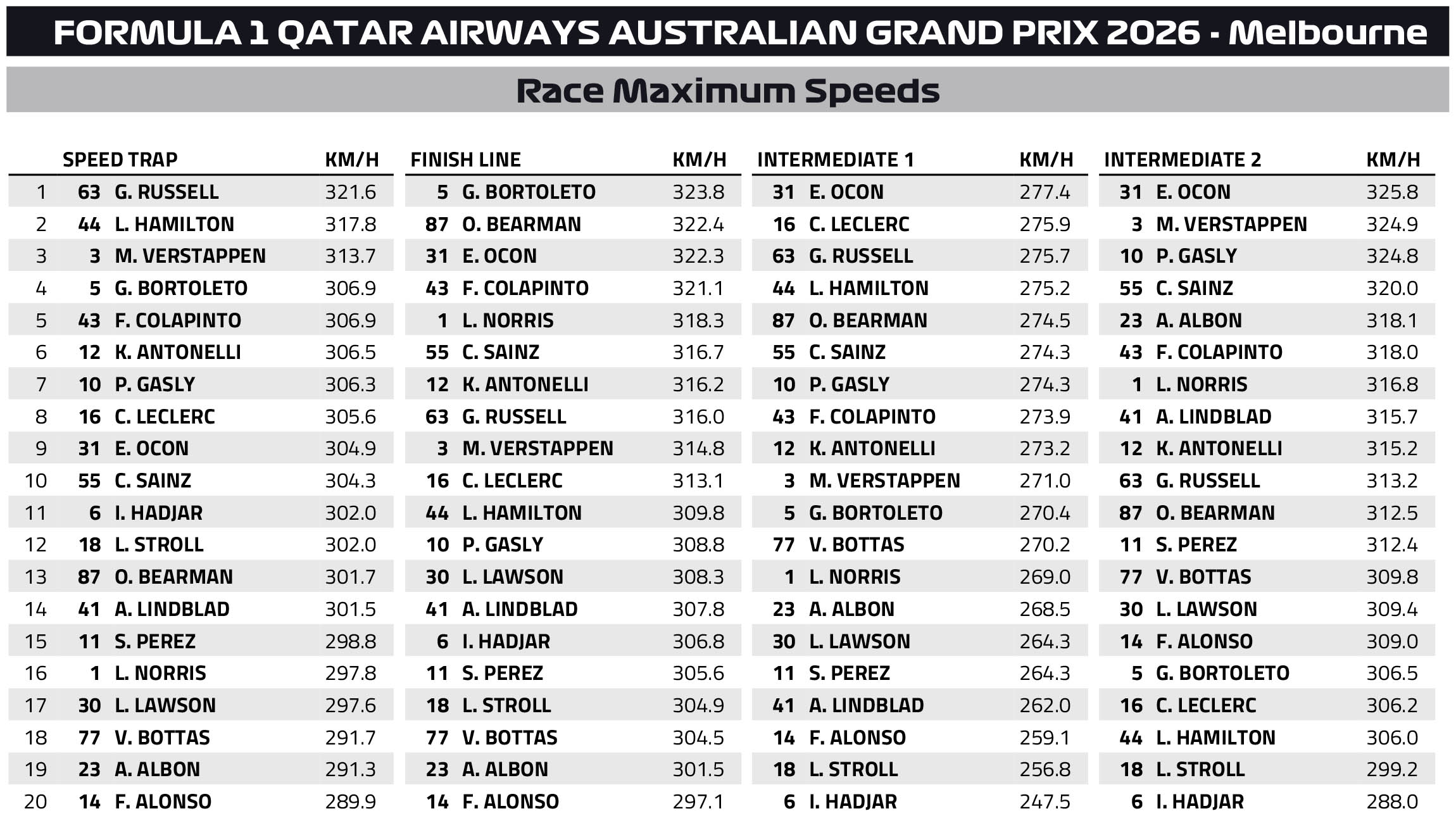 Στο Grand Prix Αυστραλίας, τον εναρκτήριο αγώνα της νέας εποχής τεχνικών κανονισμών της Formula 1, η Mercedes σημείωσε το 61ο «1-2» στην ιστορία της και το πρώτο της χωρίς τον Lewis Hamilton από το 1955. O George Russell κατέκτησε την 6η νίκη της καριέρας του, με τον Andrea Kimi Antonelli να τον ακολουθεί, ισοφαρίζοντας το καλύτερο αποτέλεσμα της δικής του καριέρας.
