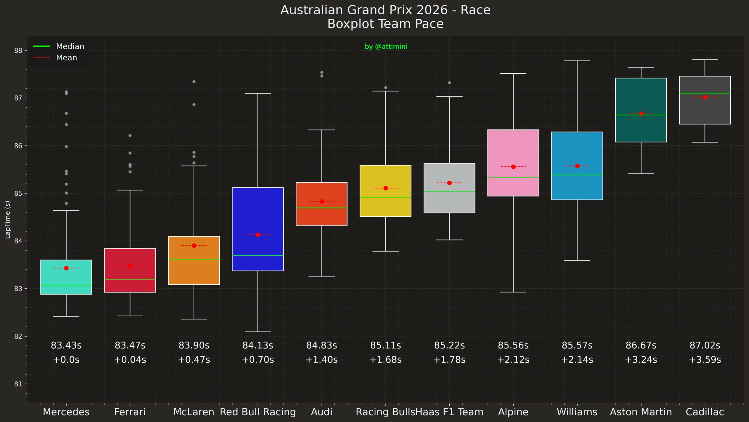 Ωστόσο, ο επικεφαλής της Scuderia, Frederic Vasseur, δήλωσε ότι η γερμανική ομάδα έχει πλεονέκτημα μισού δευτερολέπτου στο γύρο. Οι εκκινήσεις της SF-26 επέτρεψαν στην ιταλική ομάδα να έχει ελπίδες για τη νίκη, τις οποίες σκόρπισε με την απόφαση να μην εκμεταλλευτεί το VSC.