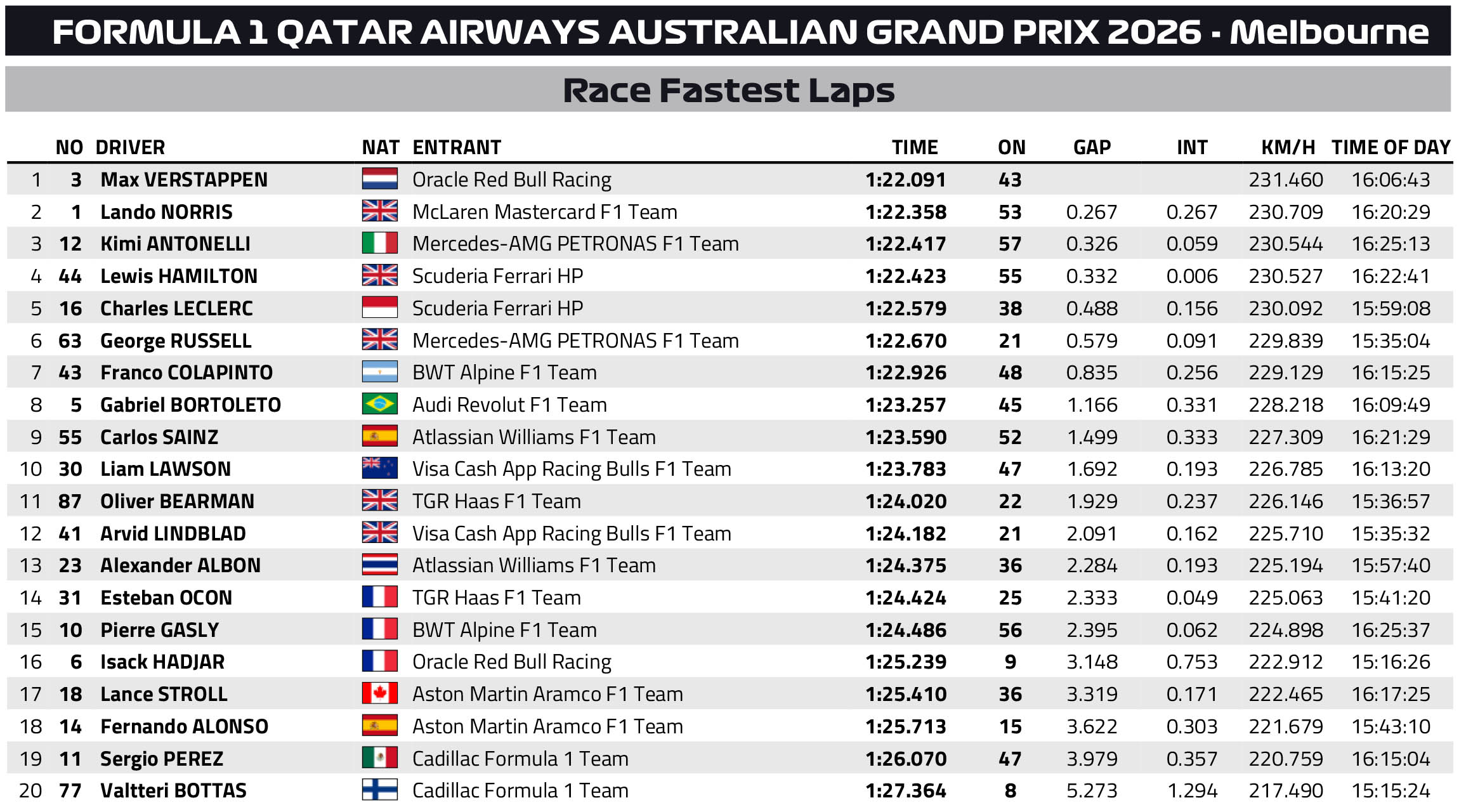 Εντυπωσιακό ντεμπούτο στη Formula 1 πραγματοποίησε ο Arvid Lindblad με τη Racing Bulls, ο οποίος έδωσε σκληρές μάχες με Πρωταθλητές όπως ο Hamilton και ο Verstappen, με σθεναρή υπεράσπιση της θέσης του. Στο τελικό stint, o μοναδικός rookie του φετινού grid έκανε ένα μικρό λάθος, επιτρέποντας στον Oliver Bearman να τον περάσει στον 40ό γύρο.