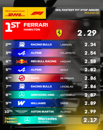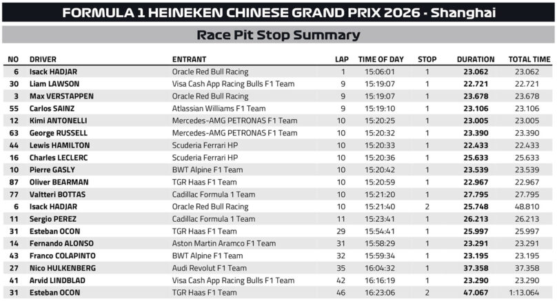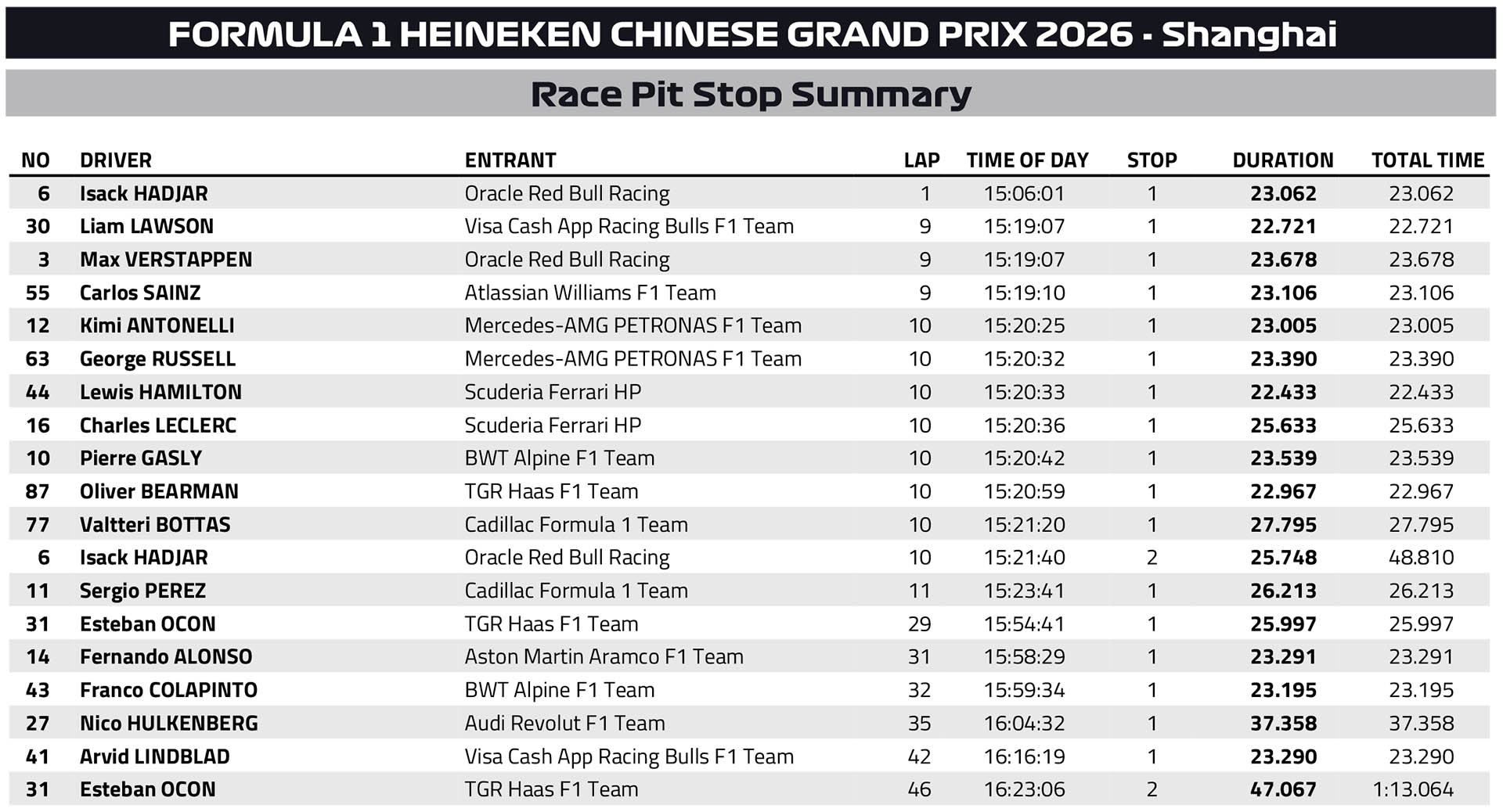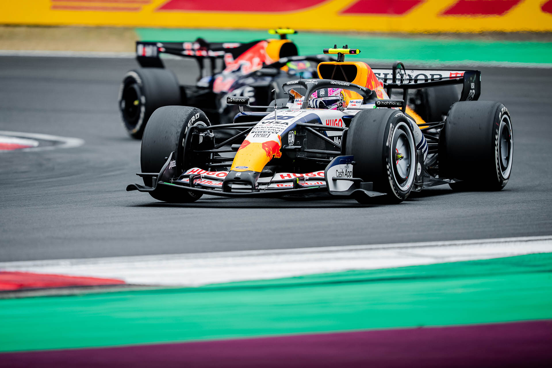 Ο Liam Lawson εκκίνησε με τη μέση γόμα και βρέθηκε στην 7η θέση, αλλά υπό την πίεση του team-mate του στη Racing Bulls, Arvid Lindblad, που είχε εκκινήσει με τα σκληρά ελαστικά. Ο Νεοζηλανδός επισκέφθηκε τα pits λίγο πριν την παρέμβαση του αυτοκινήτου ασφαλείας και έπεσε στη 13η θέση όταν οι αντίπαλοί του έκαναν ένα «πιο φθηνό» σε απώλεια χρόνου pit stop.