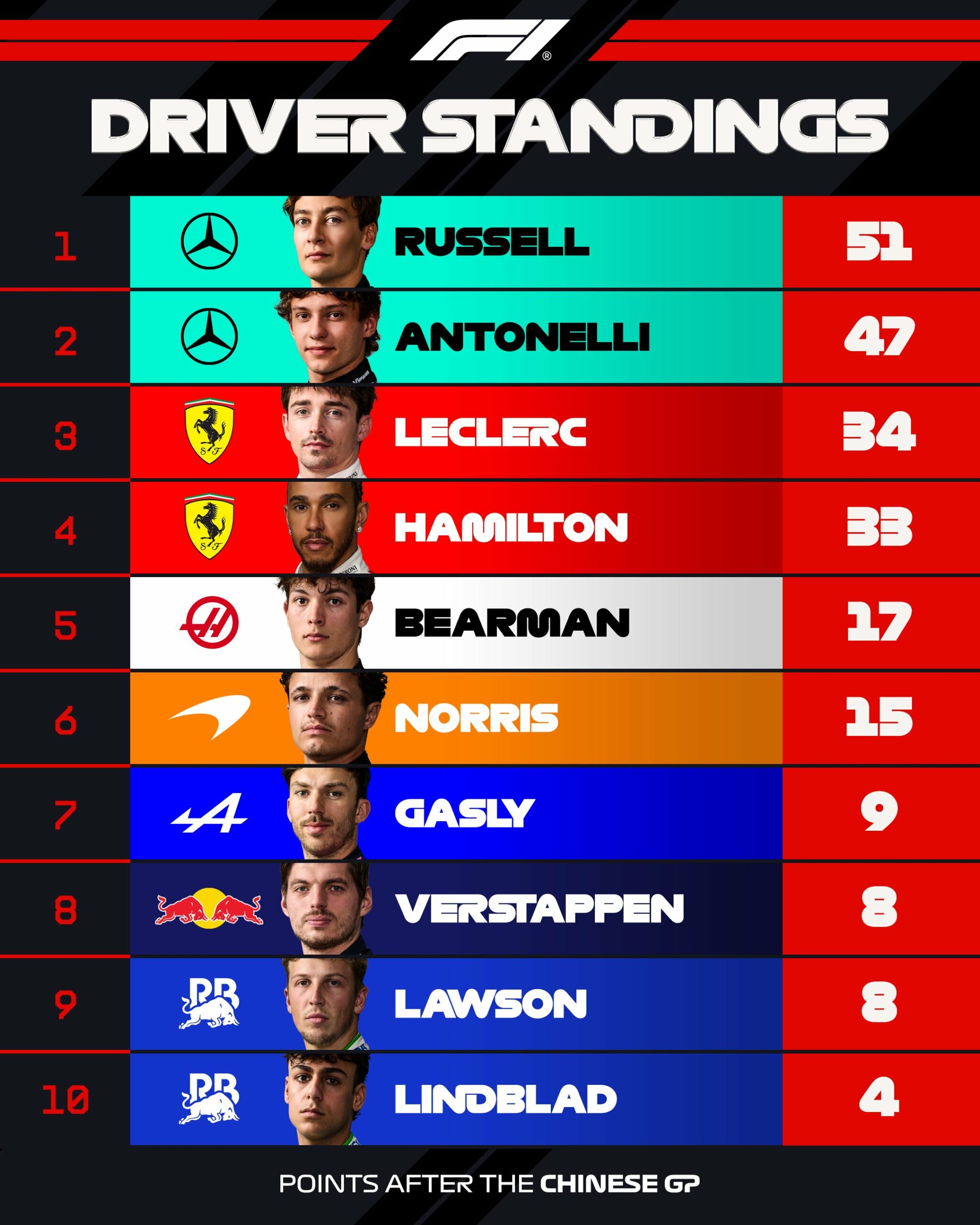 Πέραν από αυτό το περιστατικό όμως, ο Antonelli κατάφερε να διατηρήσει την ψυχραιμία του, έπειτα από ένα σπριντ γεμάτο λάθη το Σάββατο. Ακόμη και στην εκκίνηση, που κάλυψε υπερβολικά την εσωτερική και άφησε πολύ χώρο στην αγωνιστική γραμμή, με αποτέλεσμα να χάσει την πρωτοπορία. Ο Lewis Hamilton, με τις Ferrari να έχουν και πάλι καλύτερο ξεκίνημα, κατάφερε να περάσει μπροστά.