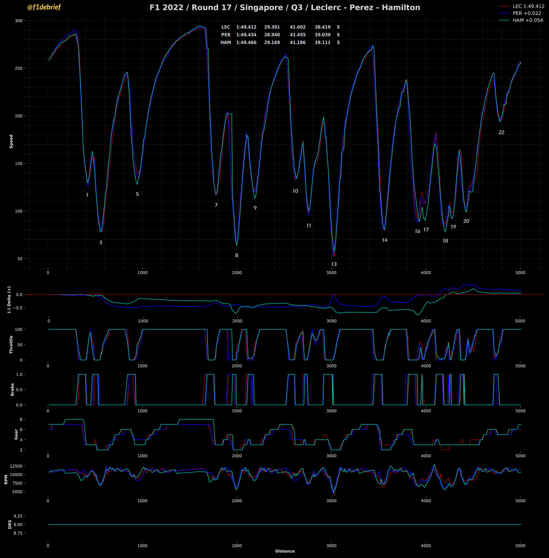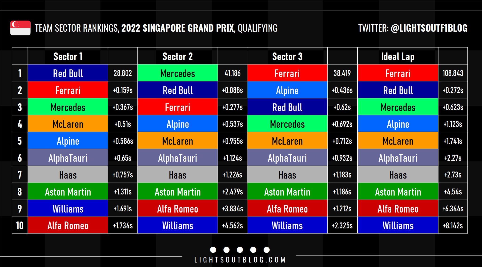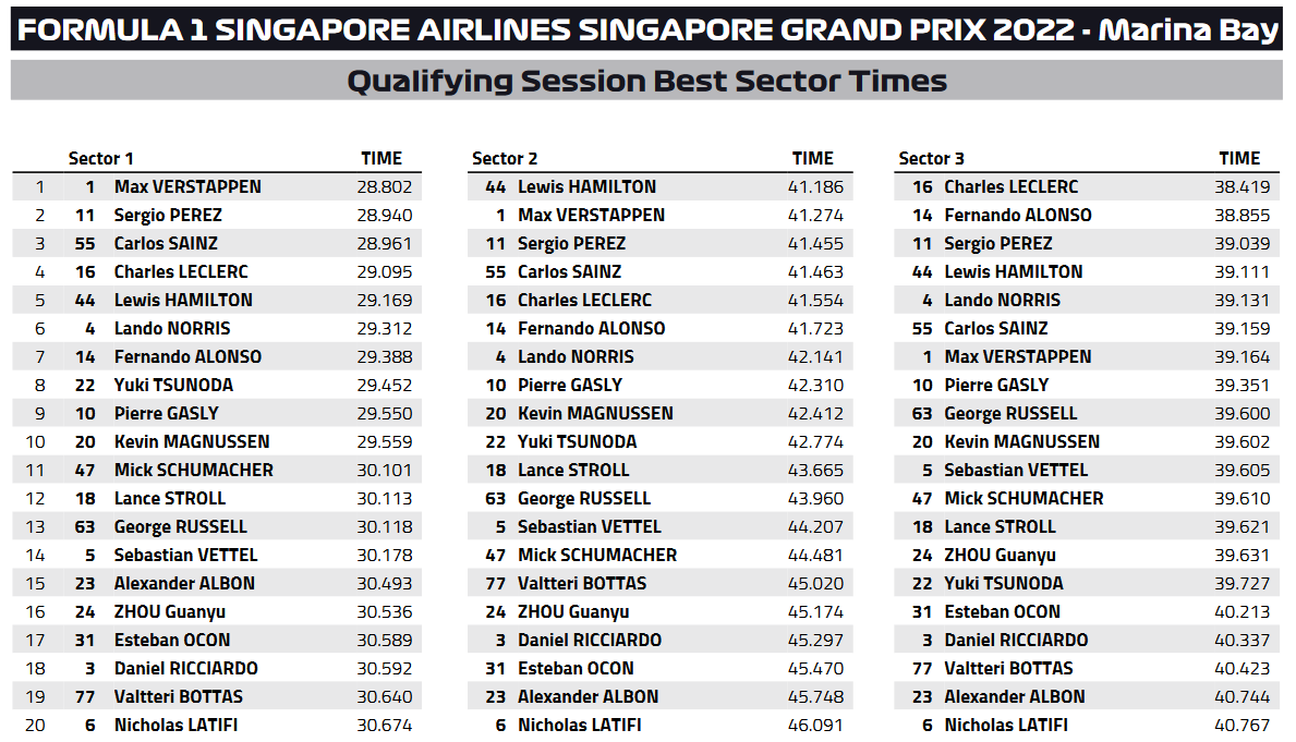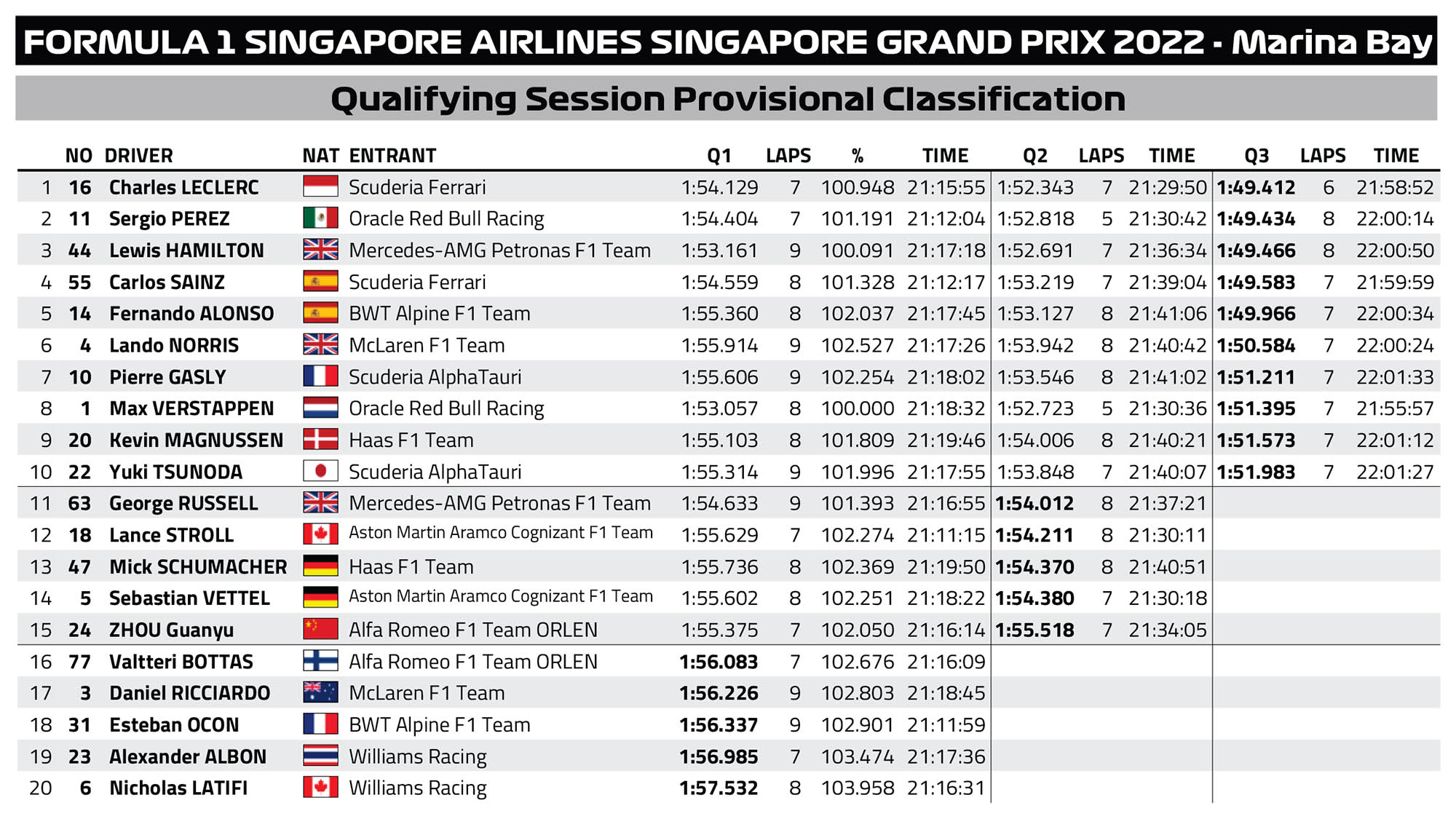 Ο Charles Leclerc κατέκτησε την 9η φετινή του pole position στο GP Σιγκαπούρης, με διαφορά μόλις 22 χλστ. από τον Sergio Perez, και 54 χλστ. του δλ. από τον Lewis Hamilton, σε μία πίστα που… δεν έλεγε να στεγνώσει. Μόνο στο Q3 τα σλικ ελαστικά ήταν η ιδανική επιλογή και ο Leclerc αποφάσισε μόλις την τελευταία στιγμή, πριν βγει στην πίστα, να κάνει τη μετάβαση από ενδιάμεσα ελαστικά στη μαλακή γόμα, όπως είχαν κάνει οι περισσότεροι.