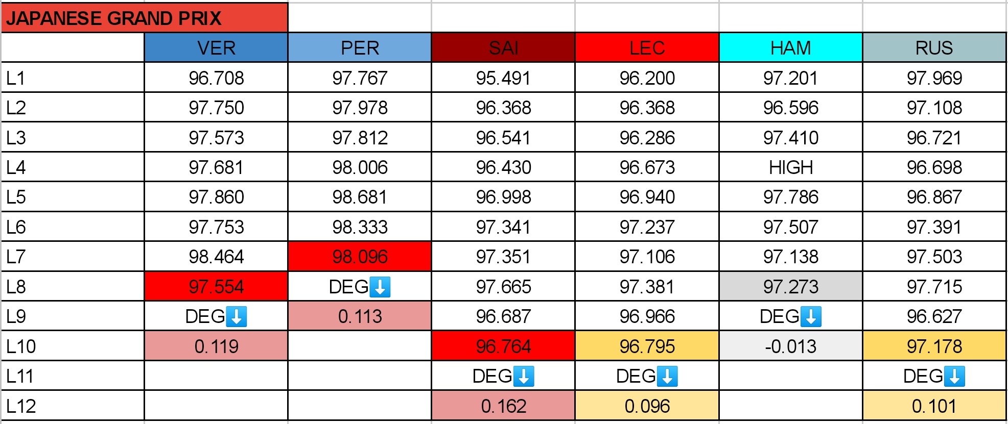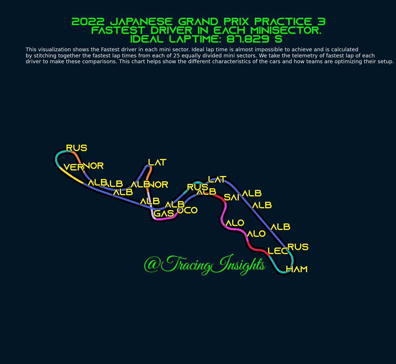 Εκπληκτική επίδοση σημείωσε ο Fernando Alonso για να βρεθεί στην 4η θέση, 2 δέκατα του δλ. εμπρός από τον Sergio Perez, που συνάντησε αργότερους συνδυασμούς στη γρήγορη προσπάθειά του. Τον Μεξικανό ακολούθησαν στον πίνακα των χρόνων οι δύο οδηγοί της Mercedes, οι οποίες έχαναν αρκετό χρόνο στις ευθείες της Suzuka, όπου είχαν 10-15 χλμ./ώρα χαμηλότερη τελική ταχύτητα, παρότι οι W13 είναι ανταγωνιστικές στις αργές στροφές.