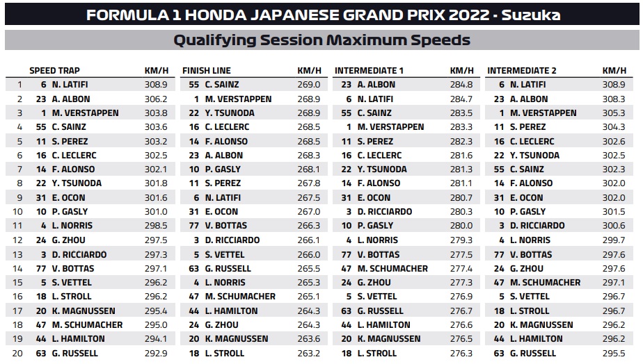 Στο Q1 σταμάτησε και η πορεία του Alex Albon, καθώς έχασε την πρόκριση από τον Vettel για μόλις 55 χλστ. του δλ. O Ταϊλανδός είδε την πρώτη του προσπάθεια να ακυρώνεται, λόγω παράβασης ορίων πίστας. Ούτε οι Kevin Magnussen (Haas) και Lance Stroll (Aston Martin) προκρίθηκαν, ενώ η ποινή 5 θέσεων που είχε ο Nicholas Latifi για το ατύχημα με τον Guanyu Zhou στο GP Σιγκαπούρης δεν έχει σημασία, καθώς ο Καναδός ήταν τελευταίος.