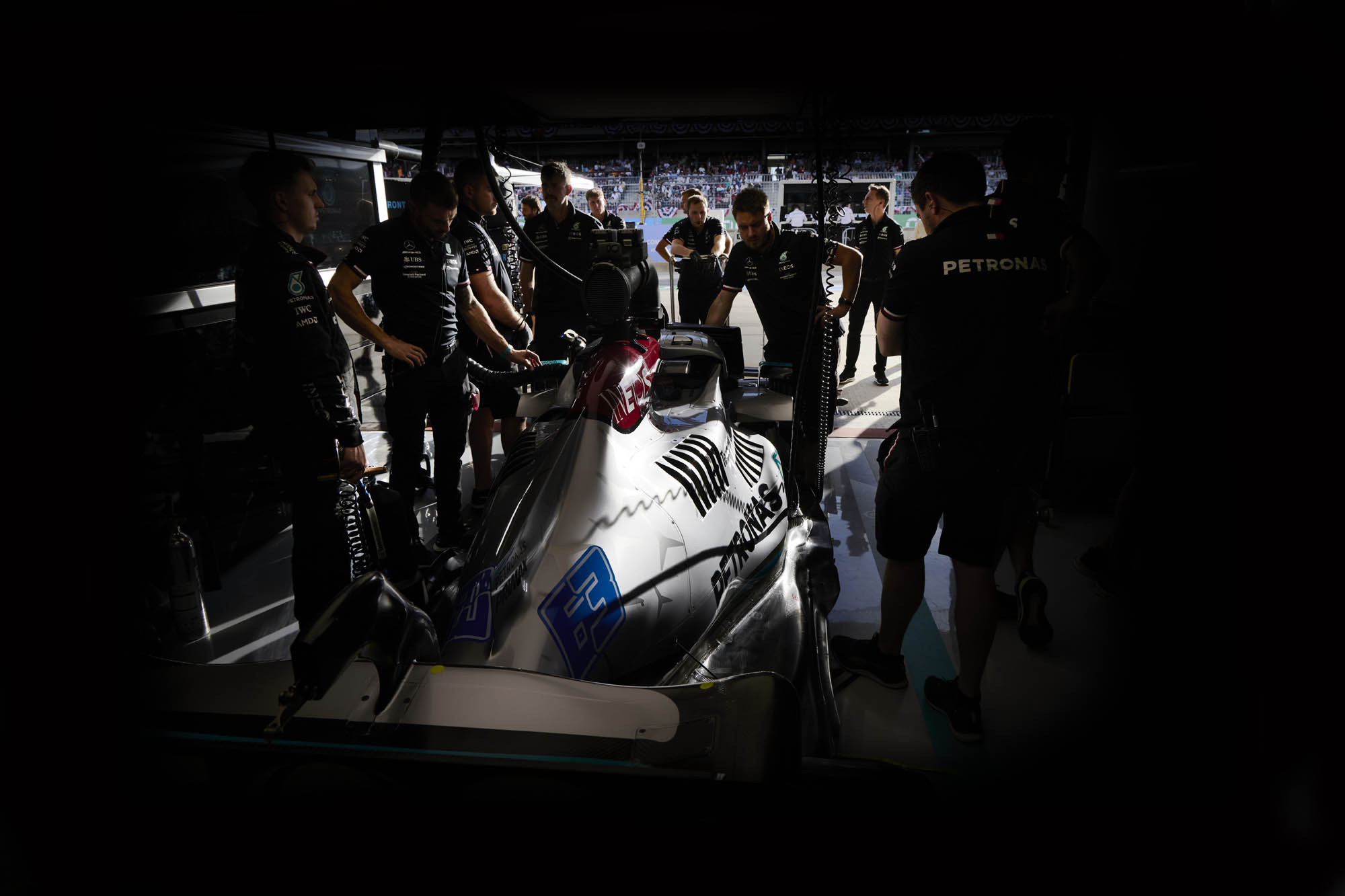 Ο επικεφαλής της ομάδας της Mercedes, Toto Wolff, δήλωσε ότι γνώριζε πως οι ελπίδες του Lewis Hamilton να κατακτήσει τη νίκη στο GP ΗΠΑ είχαν τελειώσει όταν o Max Verstappen κατάφερε να προσπεράσει με σχετική ευκολία τον Charles Leclerc στη μεταξύ τους μάχη, έπειτα από το χρονοβόρο pit stop της Red Bull, το οποίο κόστισε στον Ολλανδός δύο θέσεις. Ωστόσο, αρκετά μεγάλο ρόλο έπαιξε και το γεγονός ότι η Mercedes είχε διαφυλάξει για τους οδηγούς της μόνο ένα σετ ελαστικών μέσης γόμας (και δύο σκληρής) για τον αγώνα, από τη διαχείριση που είχε κάνει κατά τη διάρκεια του αγωνιστικού τριημέρου.