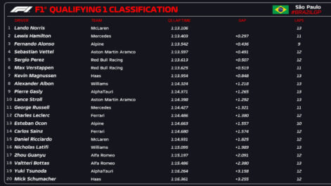 O γύρος του Lewis Hamilton δεν ήταν πολύ καλός και o Βρετανός κατέληξε στην 8η θέση, εμπρός από τον Sergio Perez, που εγκλωβίστηκε πίσω από τον Charles Leclerc, για τον οποίο η Ferrari έκανε λάθος επιλογή ελαστικών. Ο Μονεγάσκος ήταν ο μοναδικός με ενδιάμεσα ελαστικά, ενώ όλοι οι υπόλοιποι είχαν τοποθετήσει σλικ ελαστικά μαλακής γόμας. Η καλύτερη λύση θα ήταν να επιστρέψει στα pits για μαλακή γόμα, αλλά η Ferrari καθυστέρησε να τον καλέσει, οπότε προσπάθησε να κάνει ένα γύρο, αλλά ήταν αργός, και εμπόδισε και τον Perez, που είχε κολλήσει πίσω του.