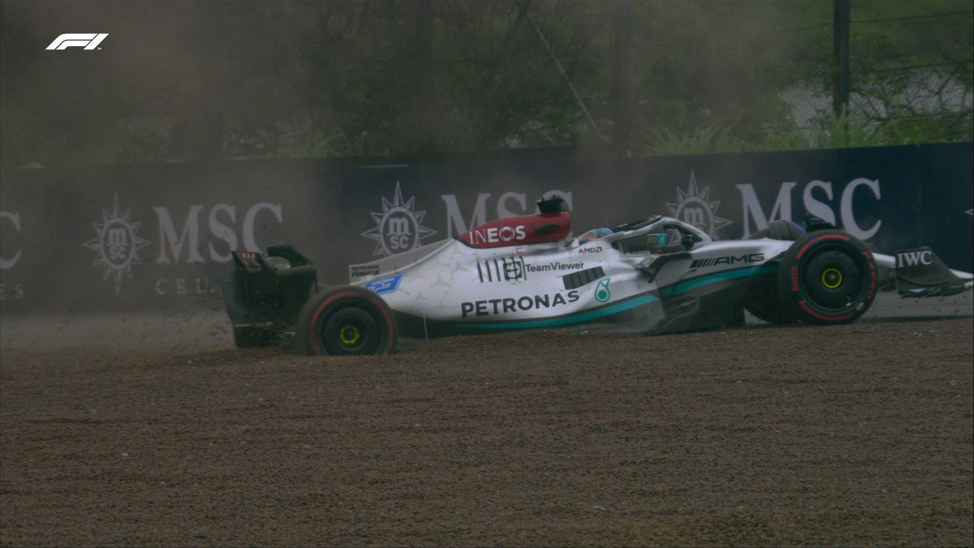 Ο Max Verstappen είχε μπλοκάρει τα φρένα του στη στροφή 8, με συνέπεια να βρεθεί 2 δέκατα του δλ. πίσω από τον Magnussen, ενώ ο George Russell βρέθηκε στην 3η θέση, επισφράγισε την επιτυχία στο Δανό οδηγό, προκαλώντας την κόκκινη σημαία. O Βρετανός μπλόκαρε τα φρένα της Mercedes στη στροφή 4, πήγε ευθεία και φαινόταν ότι θα τη γλίτωνε εύκολα, αλλά χωρίς πρόσφυση, το πίσω μέρος γύρισε και η Mercedes παγιδεύτηκε στα χαλίκια, προκαλώντας τη διακοπή.