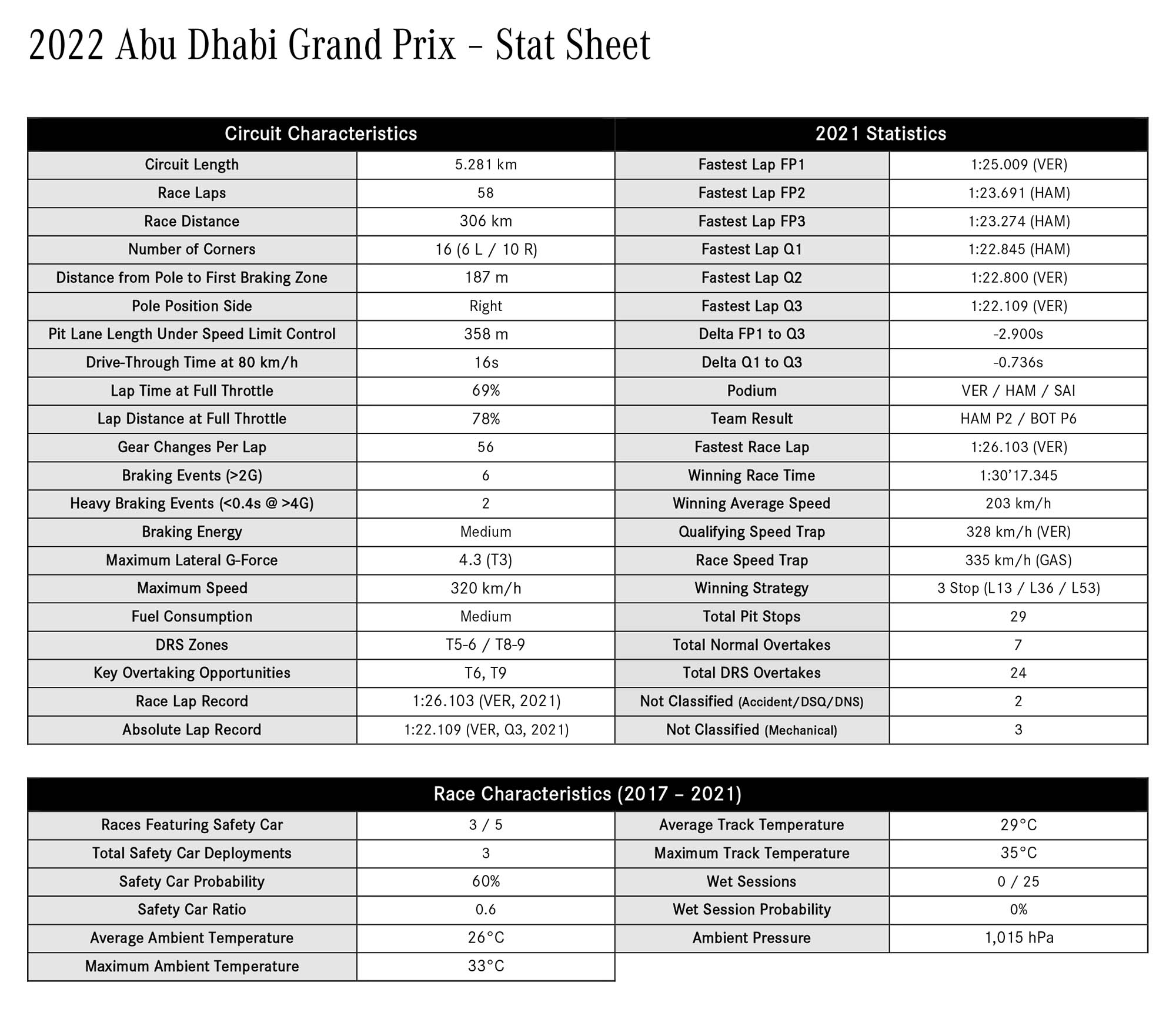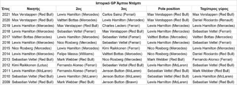 Έπειτα από το «1-2» της Mercedes στο GP Σάο Πάολο, η γερμανική ομάδα γιορτάζει το 200ό αγώνα του Lewis Hamilton με τα χρώματά της. O Βρετανός 7 φορές Παγκόσμιος Πρωταθλητής επιστρέφει στον τόπο όπου έχασε τον περυσινό τίτλο λόγω «ανθρώπινου λάθους», κυνηγάει τη νίκη στον τελευταίο αγώνα της σεζόν, για να συνεχίσει το ρεκόρ που κατέχει, έχοντας ανέβει στο υψηλότερο σκαλί του βάθρου τουλάχιστον μία φορά σε κάθε σεζόν που έχει συμμετάσχει στη Formula 1.