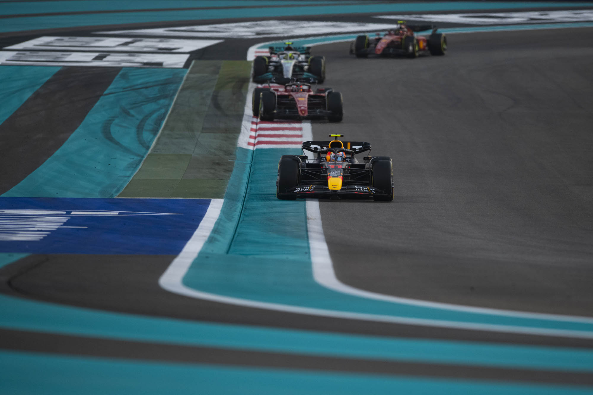 Ο Verstappen, σε ερώτηση αν δέχθηκε κλήση από το pit wall της Red Bull να καθυστερήσει τον Leclerc για να ευνοήσει τον Perez, απάντησε: «Όχι, δεν υπήρχε. Αλλά, επίσης, είναι αρκετά δύσκολο να γίνει αυτή η κλήση. Δεν θέλεις επίσης να καταλήξεις… Φυσικά και μπορείς ενδεχομένως να μπλοκάρεις, αλλά είναι αυτό δίκαιος αγώνας; Νομίζω ότι δεν είναι ο καλύτερος τρόπος για να τελειώσει η σεζόν».