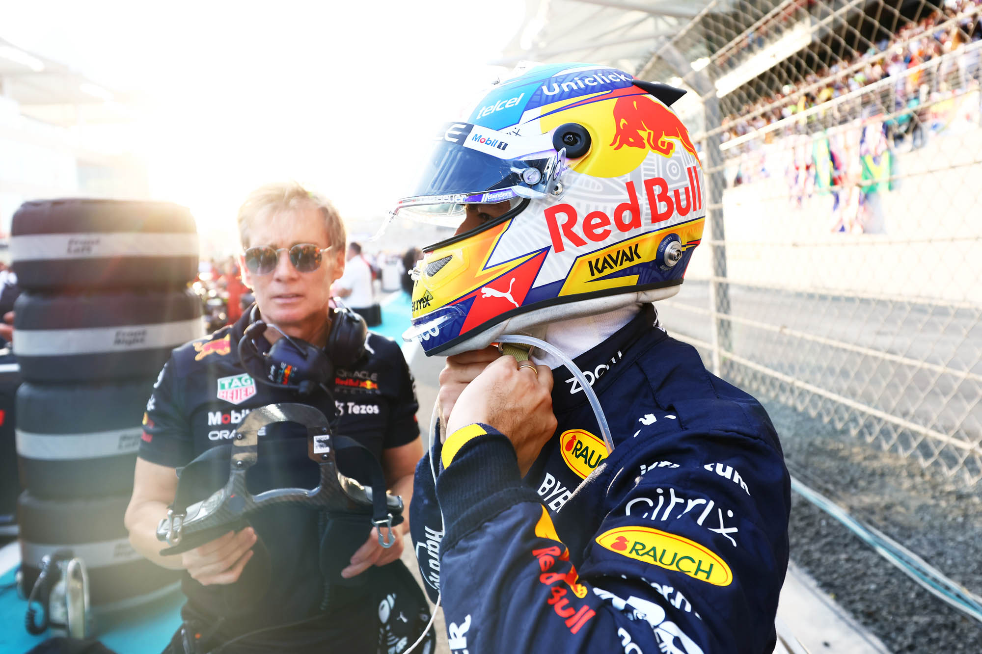 Ο επικεφαλής της ομάδας της Red Bull, Christian Horner, ανέφερε ότι επειδή ο Perez είχε καταπονήσει υπερβολικά το εμπρός δεξιό ελαστικό στο πρώτο stint, «είτε λόγω μιας μικρής διαφοράς στο στήσιμο είτε απλώς μιας ελαφρώς διαφορετικής τεχνικής», σήμαινε ότι ο Μεξικανός ήταν αναγκασμένος να επισκεφθεί τα pits και δεύτερη φορά.