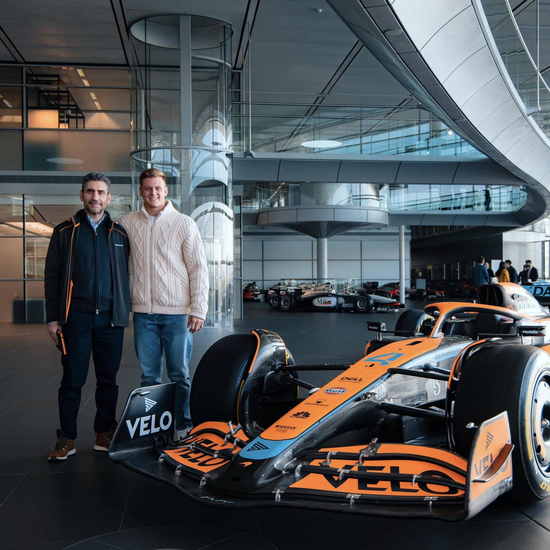 Μία από τις φωτογραφίες της McLaren δείχνει τον Mick Schumacher με τον επικεφαλής της ομάδας της McLaren, Andrea Stella, σε μία επανένωση του Ιταλού με την γερμανική οικογένεια, αφού ήταν μηχανολόγος απόδοσης του Michael στη Ferrari μεταξύ 2002 και 2006.
