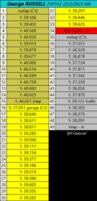 Η Mercedes ήταν η πρώτη από τις κορυφαίες ομάδες που χρησιμοποίησε τις πιο μαλακές γόμες, με τον George Russell να έχει το αρχικό προβάδισμα έχοντας χρησιμοποιήσει την C4 και τη C5. Στη συνέχεια, ο Βρετανός επικεντρώθηκε σε stint πολλών γύρων. Η Mercedes πραγματοποίησε μία έκτακτη συνεδρίαση των τεχνικών της εχθές το βράδυ, έπειτα από τα προβλήματα που αντιμετώπισε εχθές, ιδίως με την ανεξήγητη απώλεια αεροδυναμικού φορτίου στο εμπρός μέρος. Σήμερα είδαμε τους μηχανικούς να επεμβαίνουν στην εμπρός ανάρτηση της Mercedes αρκετές φορές, προσπαθώντας ίσως να βρουν τις ιδανικές ρυθμίσεις για να αντιμετωπίσουν το πρόβλημα.
