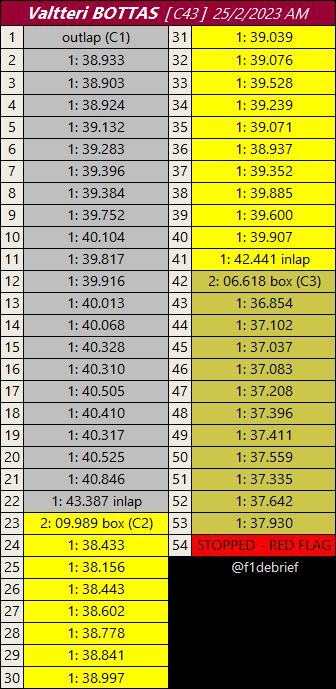 Δεν ήταν καλή ημέρα για την Alfa Romeo, που παρουσίαζε αρκετό porpoising, ενώ οι περισσότερες ομάδες το έχουν μειώσει πάρα πολύ πλέον. Έπειτα από την προσομοίωση αγώνα του Valtteri Bottas, περίπου 80 λεπτά πριν από το τέλος της πρωινής διαδικασίας της τελικής ημέρας δοκιμών, ο Φινλανδός σταμάτησε στην πίστα, προκαλώντας κόκκινη σημαία. Έπειτα από μία αλλαγή σχέσης, ακούστηκε ένας μη υγιής ήχος, παρόμοιος με αυτόν που ακούστηκε εχθές στο τέλος της ημέρας όταν ο Guanyu Zhou προσπάθησε να κάνει δοκιμαστική εκκίνηση. Ίσως πρόκειται για πρόβλημα στο κιβώτιο της Alfa Romeo, η οποία δεν επέστρεψε στην πίστα μέχρι το τέλος της πρωινής διαδικασίας.