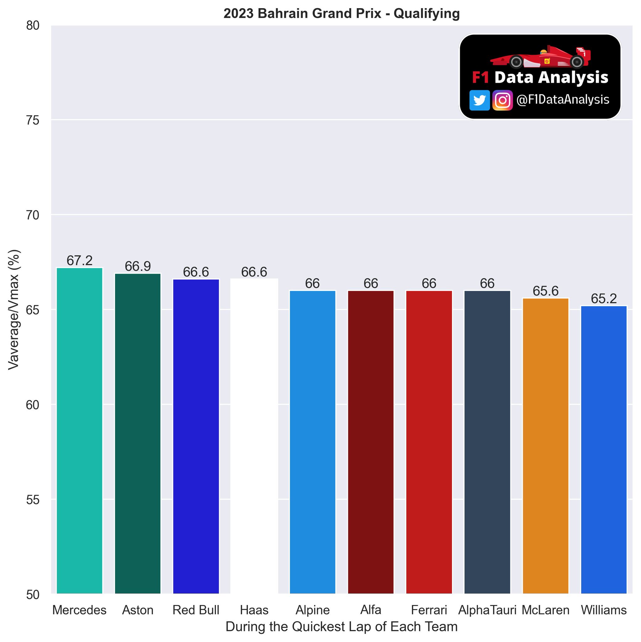 Η Ferrari ήταν πολύ γρήγορη στις ευθείες, με τις ρυθμίσεις κινητήρα στο μέγιστο και τον επικεντρωμένο σε αυτό το χαρακτηριστικό σχεδιασμό της SF-23. Η Red Bull ήταν καλύτερη στις γρήγορες στροφές και στην έξοδο από αυτές με καλή αεροδυναμική απόδοση, ενώ η Aston Martin έδειξε να είναι πολύ καλή στις αργές και μέσης ταχύτητας στροφές, με καλή μηχανική πρόσφυση.