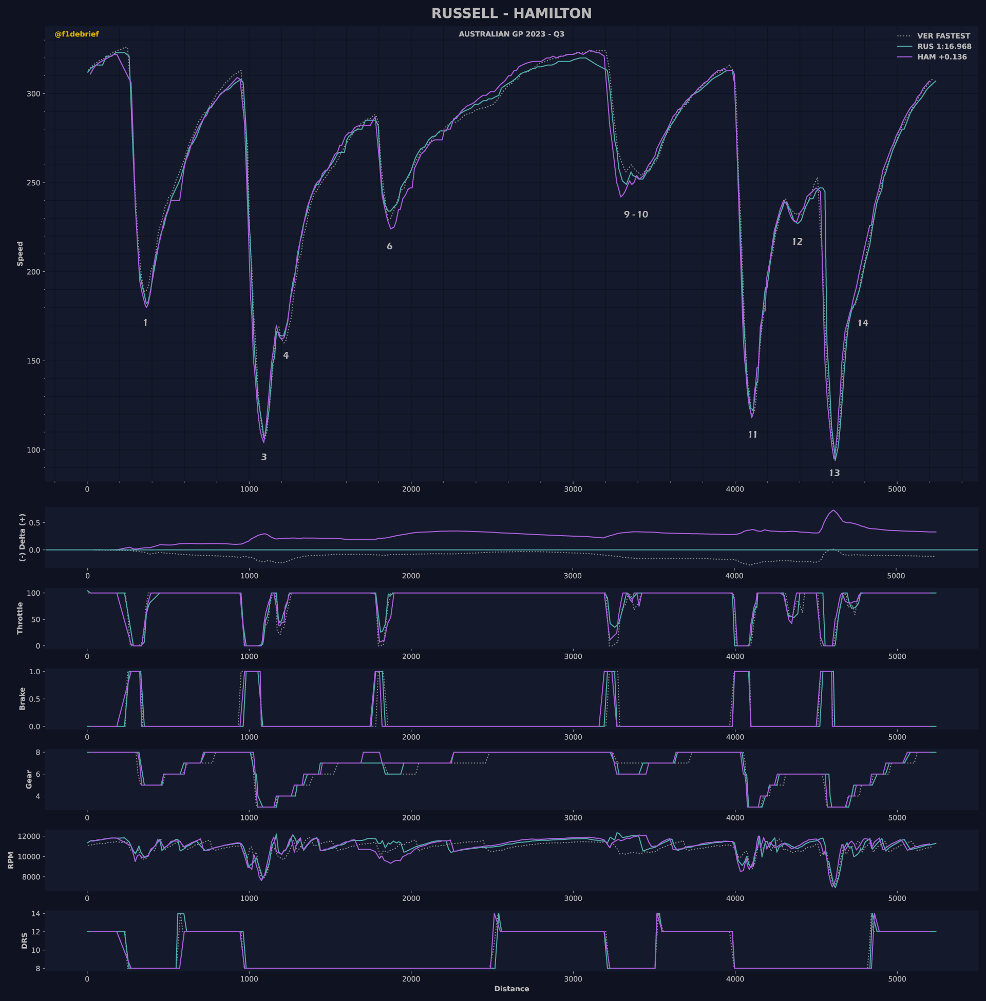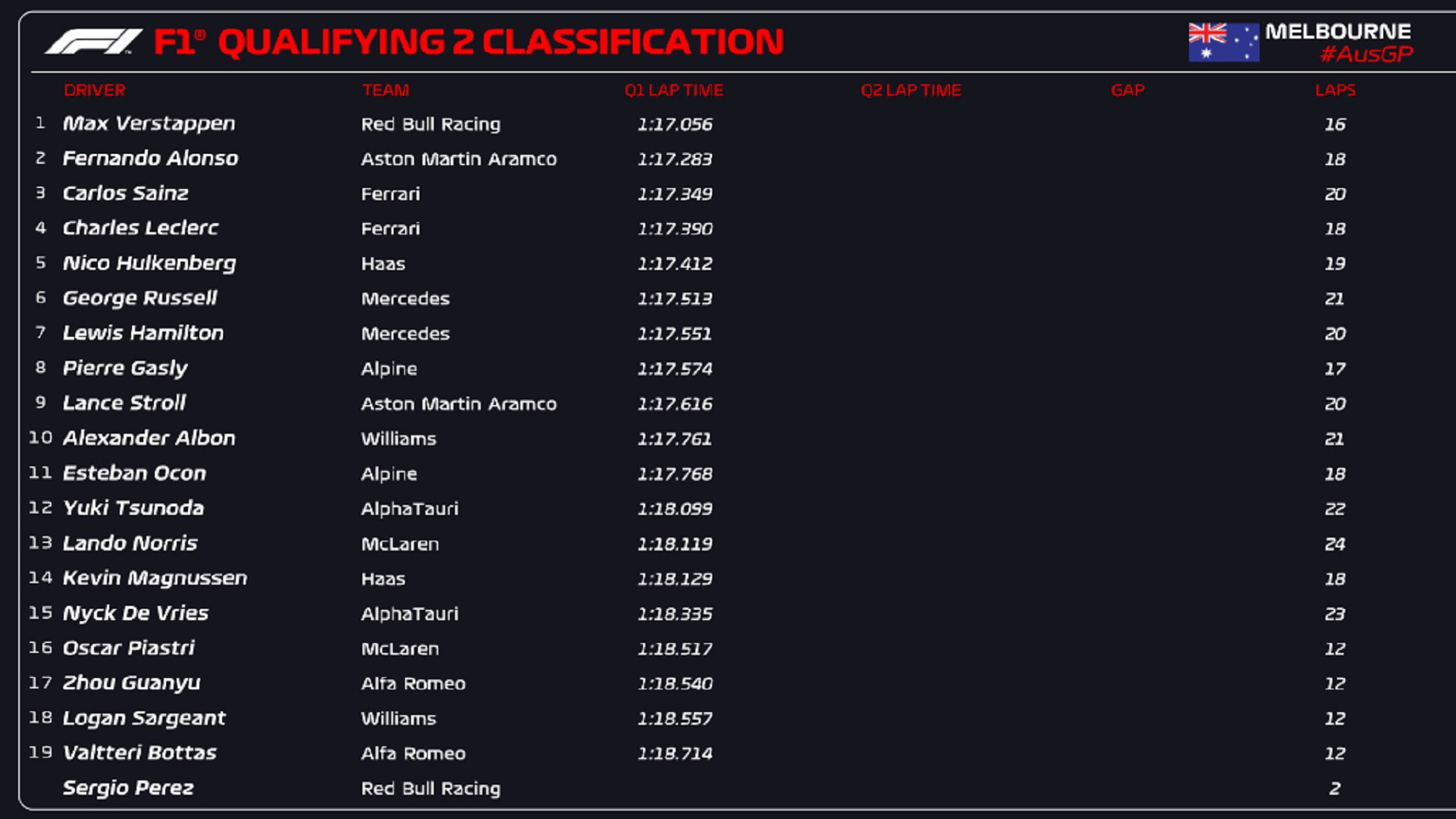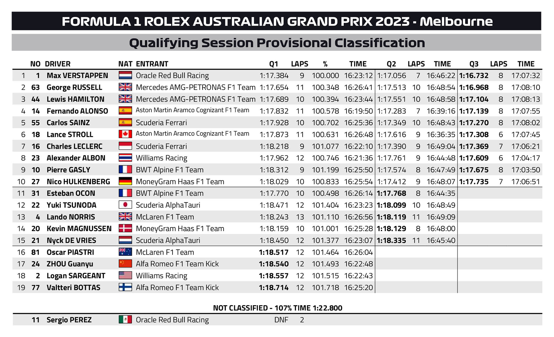 O Max Verstappen κατέκτησε τη δεύτερη φετινή του pole position και την πρώτη του στο Albert Park, παρά τα προβλήματα που ανέφερε ότι αντιμετώπισε στην πρώτη του προσπάθεια στο Q3, με τα κατεβάσματα στο κιβώτιο, που προκαλούσαν μπλοκάρισμα του πίσω άξονα. Ένα από τα μεγάλα όπλα της Red Bull στο Albert Park είναι η αποδοτικότητα του DRS της RB19, στις τέσσερις ζώνες που καλύπτουν το 45% του μήκους της πίστας.