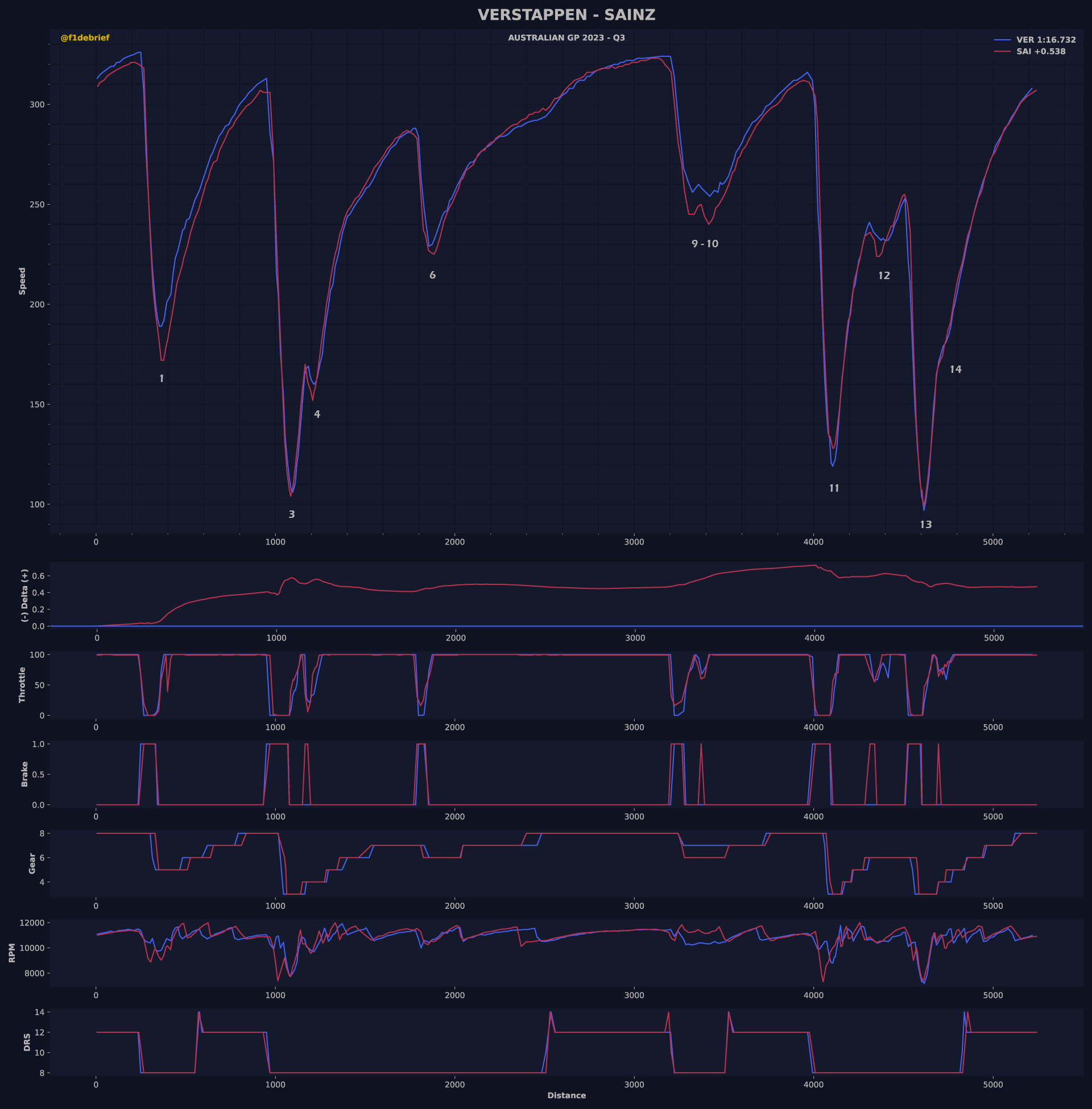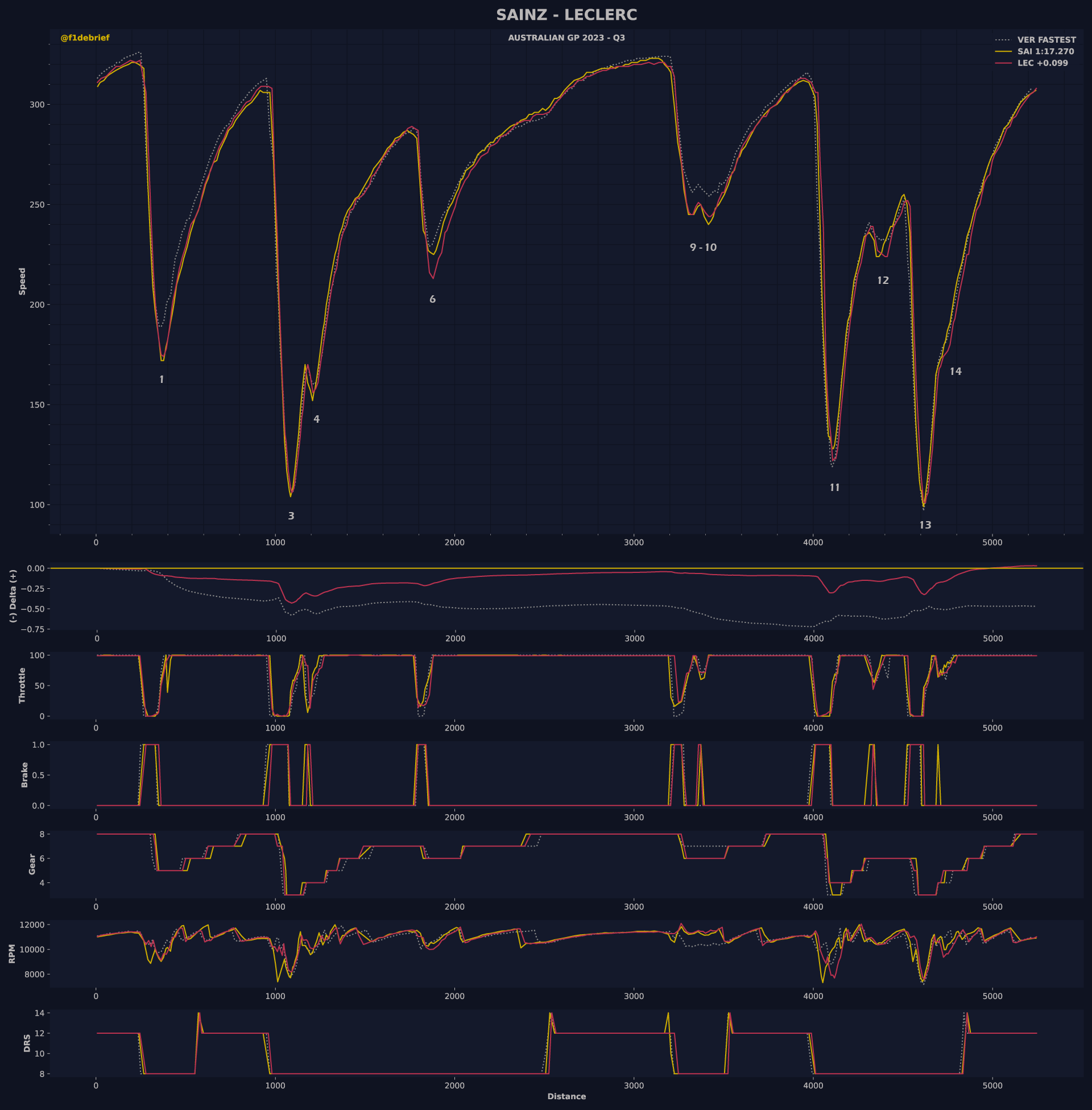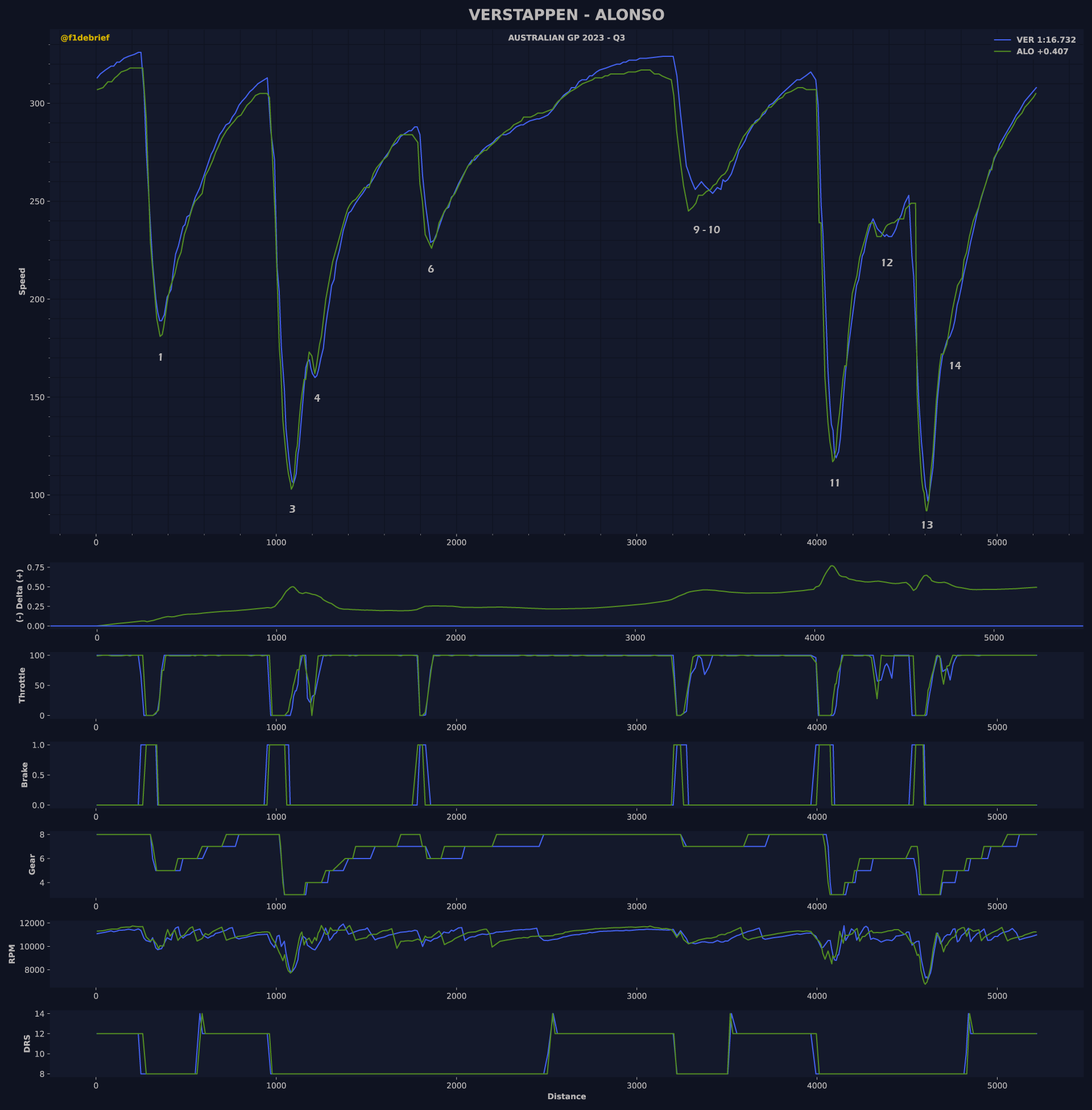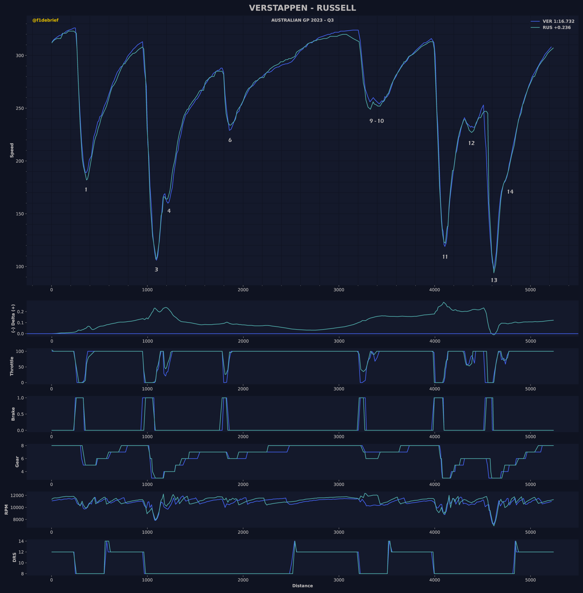 O Max Verstappen κατέκτησε τη δεύτερη φετινή του pole position και την πρώτη του στο Albert Park, παρά τα προβλήματα που ανέφερε ότι αντιμετώπισε στην πρώτη του προσπάθεια στο Q3, με τα κατεβάσματα στο κιβώτιο, που προκαλούσαν μπλοκάρισμα του πίσω άξονα. Ένα από τα μεγάλα όπλα της Red Bull στο Albert Park είναι η αποδοτικότητα του DRS της RB19, στις τέσσερις ζώνες που καλύπτουν το 45% του μήκους της πίστας.