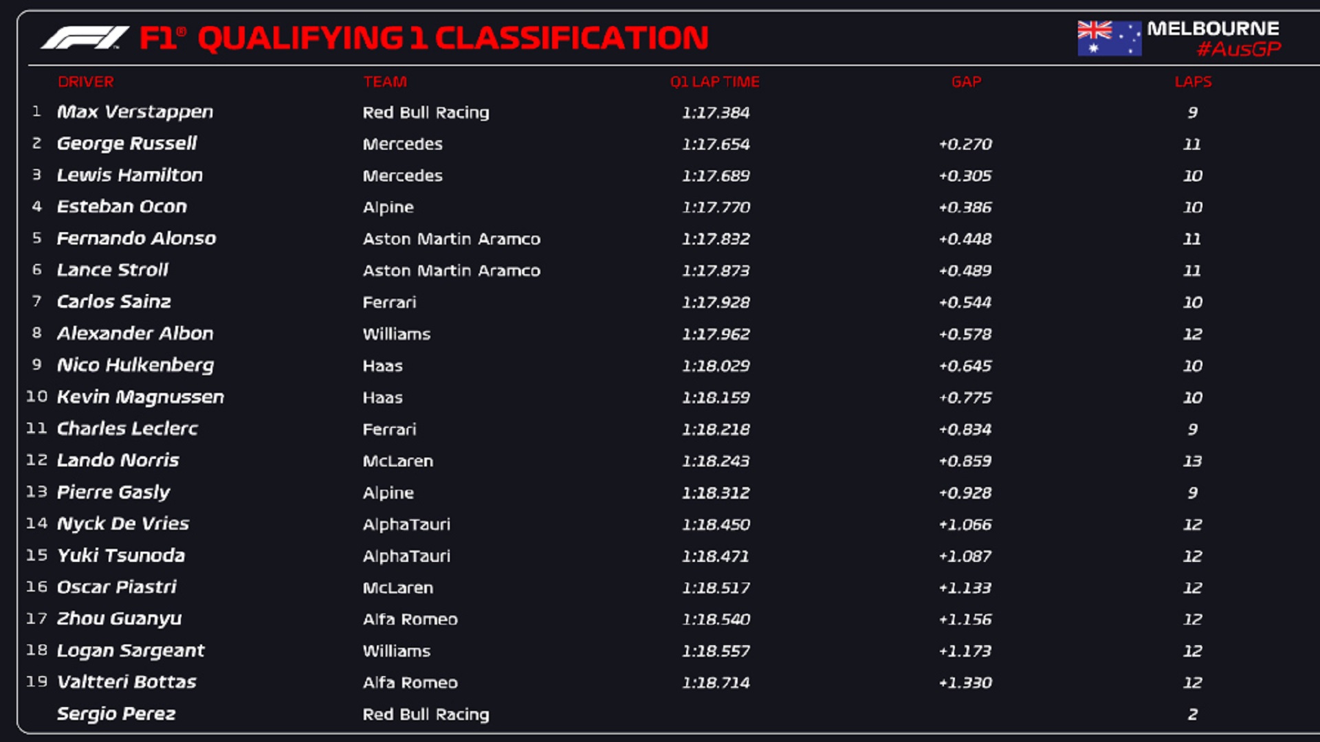 Ήταν όμως ένα αχρείαστο λάθος για τον Perez, καθώς βρισκόταν στον πρώτο μόλις γύρο του και ήταν δεδομένο ότι θα περνούσε εύκολα στο Q2. Αντ’ αυτού, θα εκκινήσει αύριο τελευταίος. Εκτός διαδικασίας έμειναν επίσης οι δύο Alfa Romeo, παρά τις αναβαθμίσεις που έχουν αυτό το Σαββατοκύριακο, όπως και ο τοπικός ήρωας Oscar Piastri, ο οποίος δεν ήταν ικανοποιημένος από την ισορροπία της McLaren.