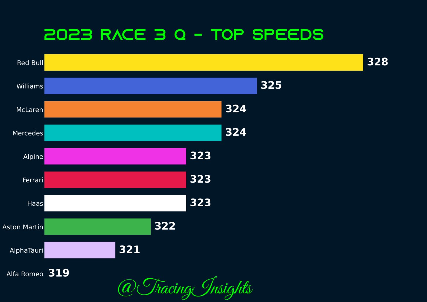 Πίσω από τον Μονεγάσκο, στην 8η θέση, κατάφερε να τοποθετήσει τη Williams ο Alex Albon, ο οποίος καθ’ όλη τη διάρκεια της διαδικασίας σημείωνε τον ταχύτερο χρόνο στο μεσαίο sector, εκμεταλλευόμενος την υψηλή τελική ταχύτητα του μονοθεσίου στη μεγάλη ευθεία της πίστας. Η βρετανική ομάδα έχει επιλέξει ένα στήσιμο με χαμηλό αεροδυναμικό φορτίο, και επειδή υπάρχουν λίγες πολύ αργές στροφές, λειτουργεί πολύ καλά για την ίδια. Ο Pierre Gasly, με την πρώτη Alpine, θα παραταχθεί στην 9η θέση, εμπρός από τον πολύ καλό στις κατατακτήριες δοκιμές φέτος Nico Hulkenberg με τη Haas.