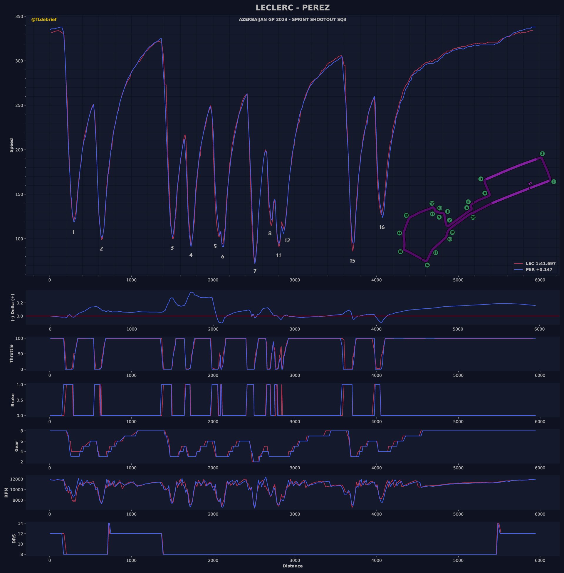 Ο Sergio Perez κατάφερε να κινηθεί ταχύτερα από τον team-mate του στη Red Bull και στις δύο προσπάθειες του SQ3. Ωστόσο, η μικρή βελτίωση (32 χλστ. του δλ.) που κατάφερε να σημειώσει ο Μεξικανός στο δεύτερο γύρο του δεν ήταν αρκετή για να πλησιάσει το χρόνο του Leclerc. O Perez εξασφάλισε τη δεύτερη θέση εκκίνησης για το σπριντ, εμπρός από τον Max Verstappen, που βρέθηκε σχεδόν 0,29 δλ. μακριά από την κορυφή. O Perez δήλωσε ότι η Ferrari ήταν καλύτερη σε απόδοση στον ένα γρήγορο γύρο.