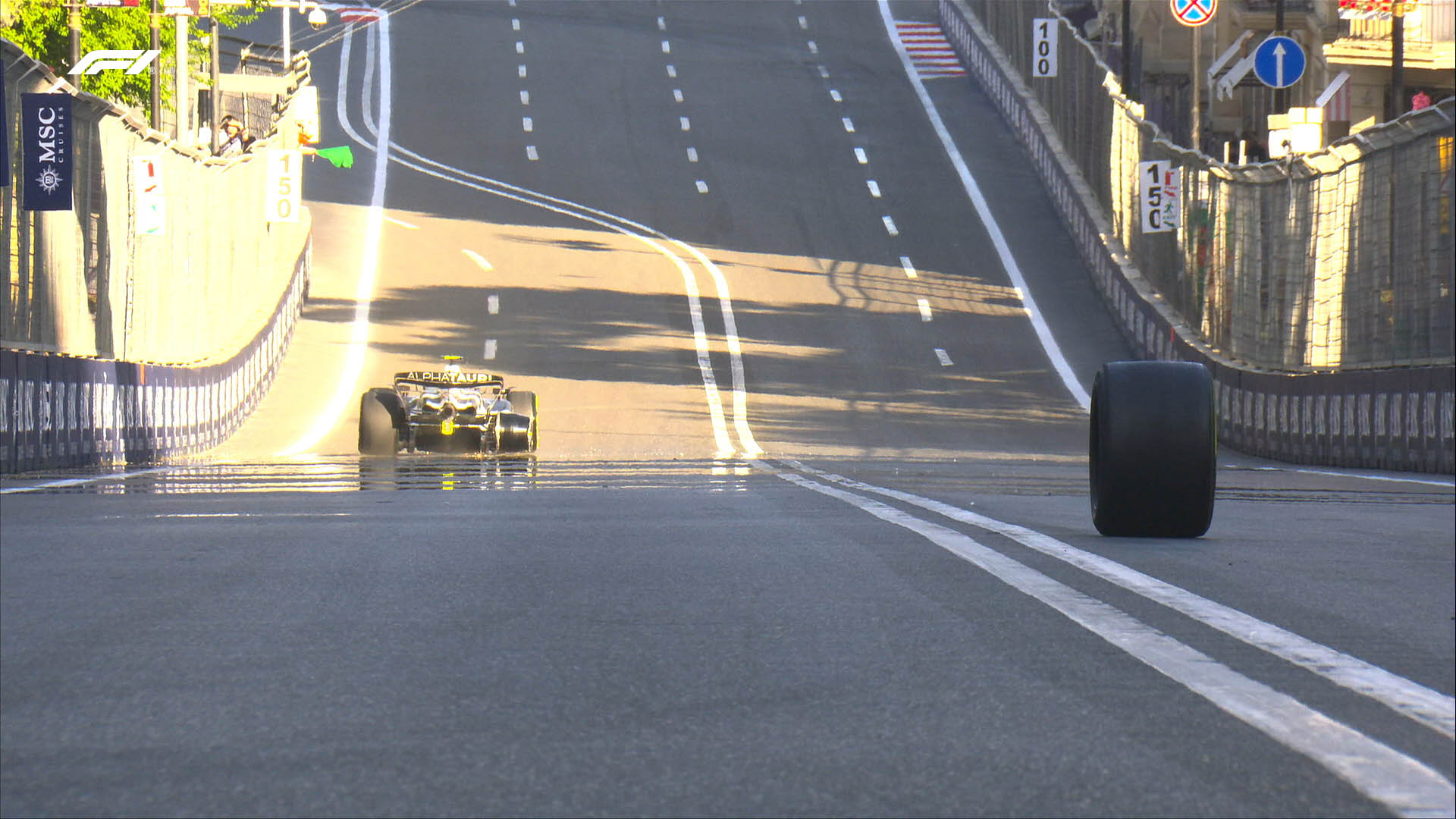 Στο μεταξύ, ο Yuki Tsunoda είχε χτυπήσει τον τοίχο στη στροφή 13, έχοντας χάσει τη μισή εμπρός αεροτομή του, αφότου τον είχε στριμώξει στον τοίχο ο team-mate του, Nyck de Vries. Όταν ο Tsunoda χτύπησε τον τοίχο λίγο αργότερα, το πίσω δεξιό ελαστικό του είχε βγει από τη ζάντα και είχε μείνει στη μέση της πίστας, προκαλώντας αρχικά εικονικό αυτοκίνητο ασφαλείας.