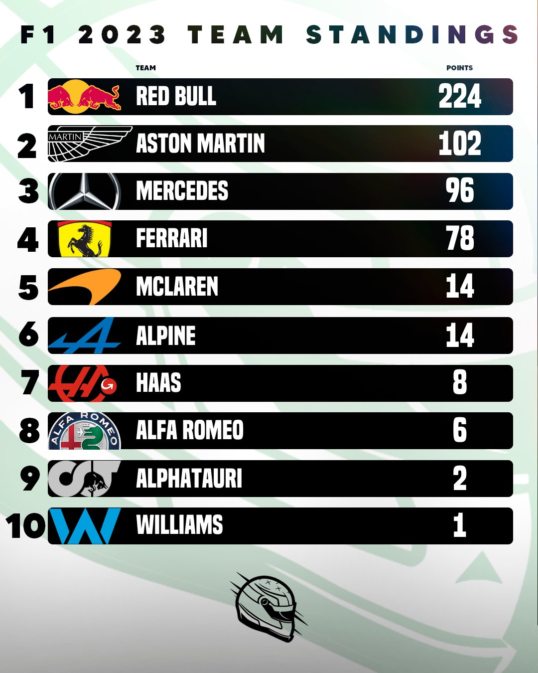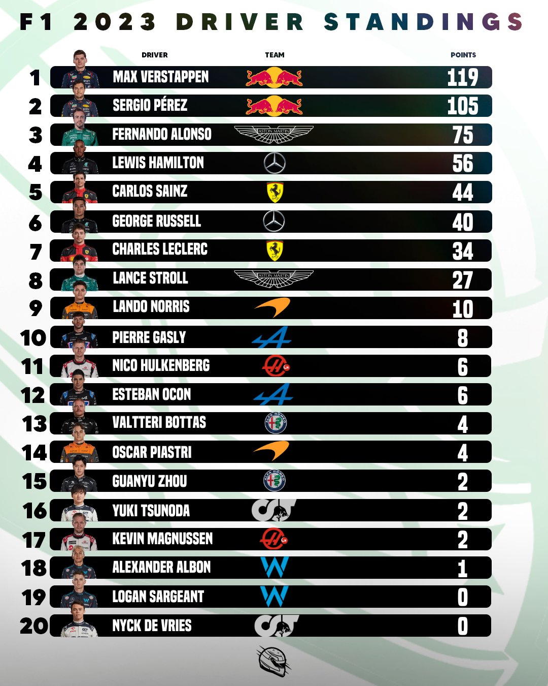 Στην κορυφή, ο Verstappen αύξησε τη διαφορά του από τον Perez πάνω από 18 δλ., από τα 20 δλ. που χρειαζόταν, καταφέρνοντας επίσης να εξοικονομήσει και περισσότερα καύσιμα στην πορεία από το Μεξικανό, ο οποίος όπως αντεπιτέθηκε στον 45ο γύρο με το ταχύτερο πέρασμα, ακριβώς πριν ο Πρωταθλητής team-mate του εισέλθει στα pits για τη μέση γόμα.