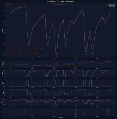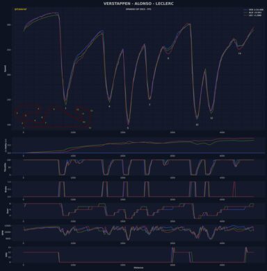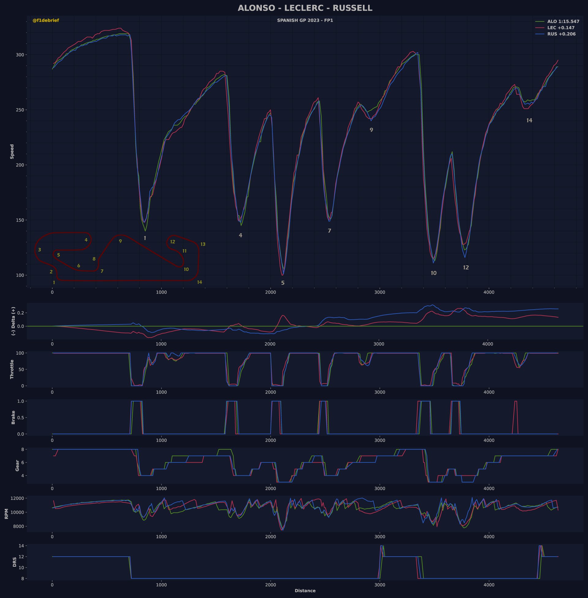 Πίσω από τις δύο Red Bull, στην 3η θέση, βρέθηκε ο Esteban Ocon, έχοντας σημειώσει έναν πολύ καλό γύρο με την Alpine, παρότι λίγο μετά το μέσο της διαδικασίας είδε μερικά κομμάτια από το μονοθέσιό του να σπάνε κατά την ανάβαση των kerb στην έξοδο της τελευταίας στροφής λίγο μετά το μέσο του FP1.