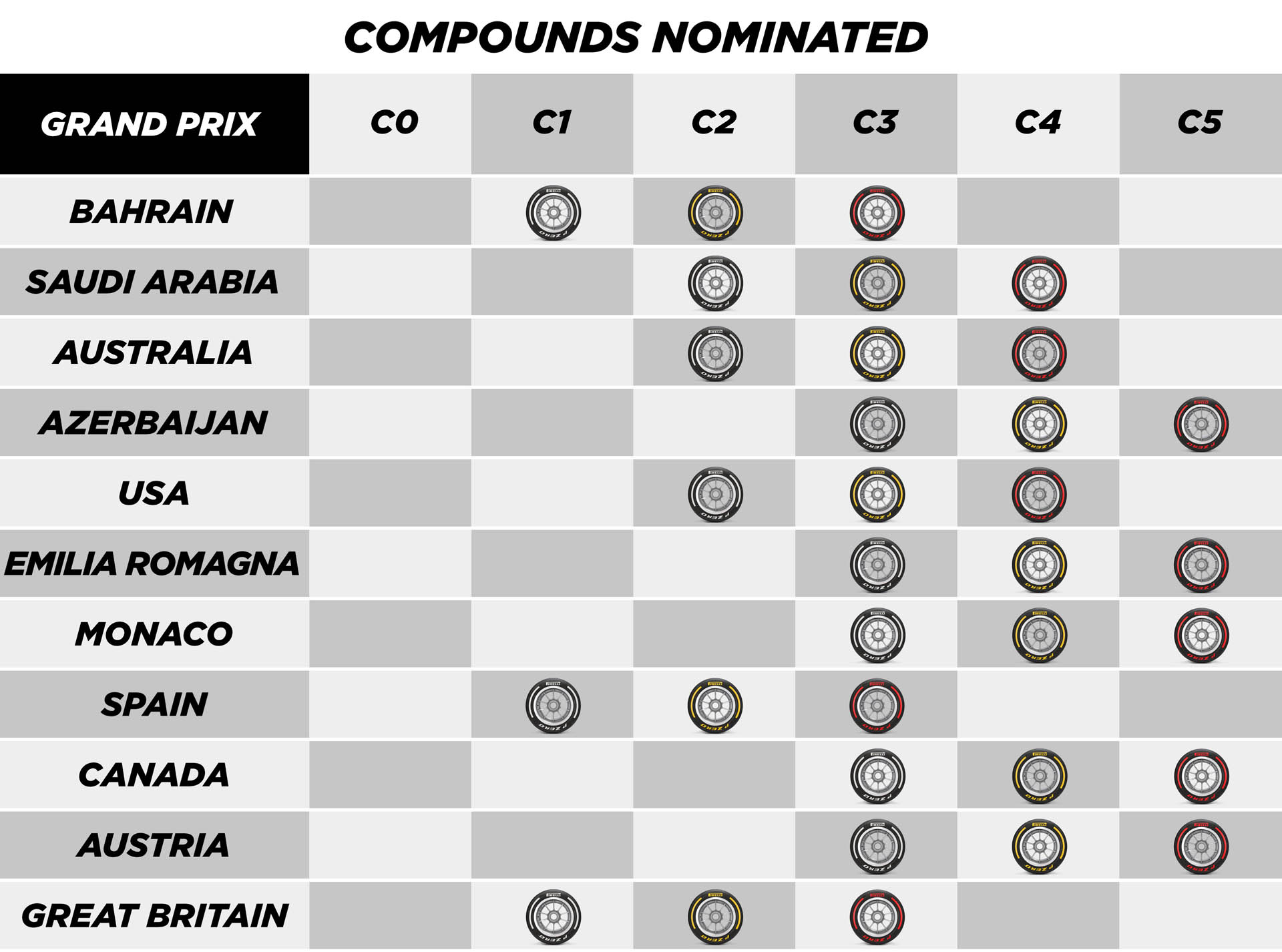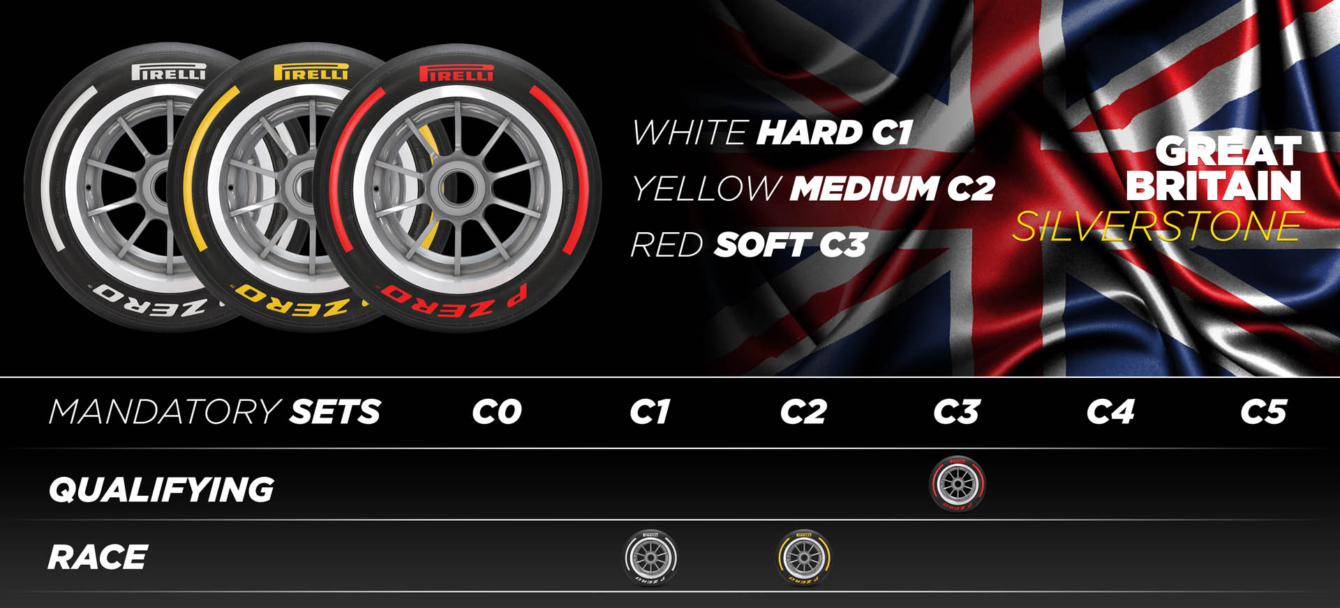 Μεταξύ 7-9 Ιουλίου θα πραγματοποιηθεί το GP Μ. Βρετανίας στο Silverstone, με τις ταχύτατες στροφές της βρετανικής πίστας να ασκούν υψηλά πλευρικά φορτία στα ελαστικά. Συνεπώς, η Pirelli θα φέρει πιο σκληρές γόμες (C1, C2, C3) και θα κάνει το αγωνιστικό της ντεμπούτο η ενισχυμένη κατασκευή σκελετού που δοκίμασαν οι ομάδες στο GP Ισπανίας, που έχει υψηλότερη αντοχή, χάρη στη χρήση υλικών που προορίζονταν αρχικά για τα ελαστικά του 2024.